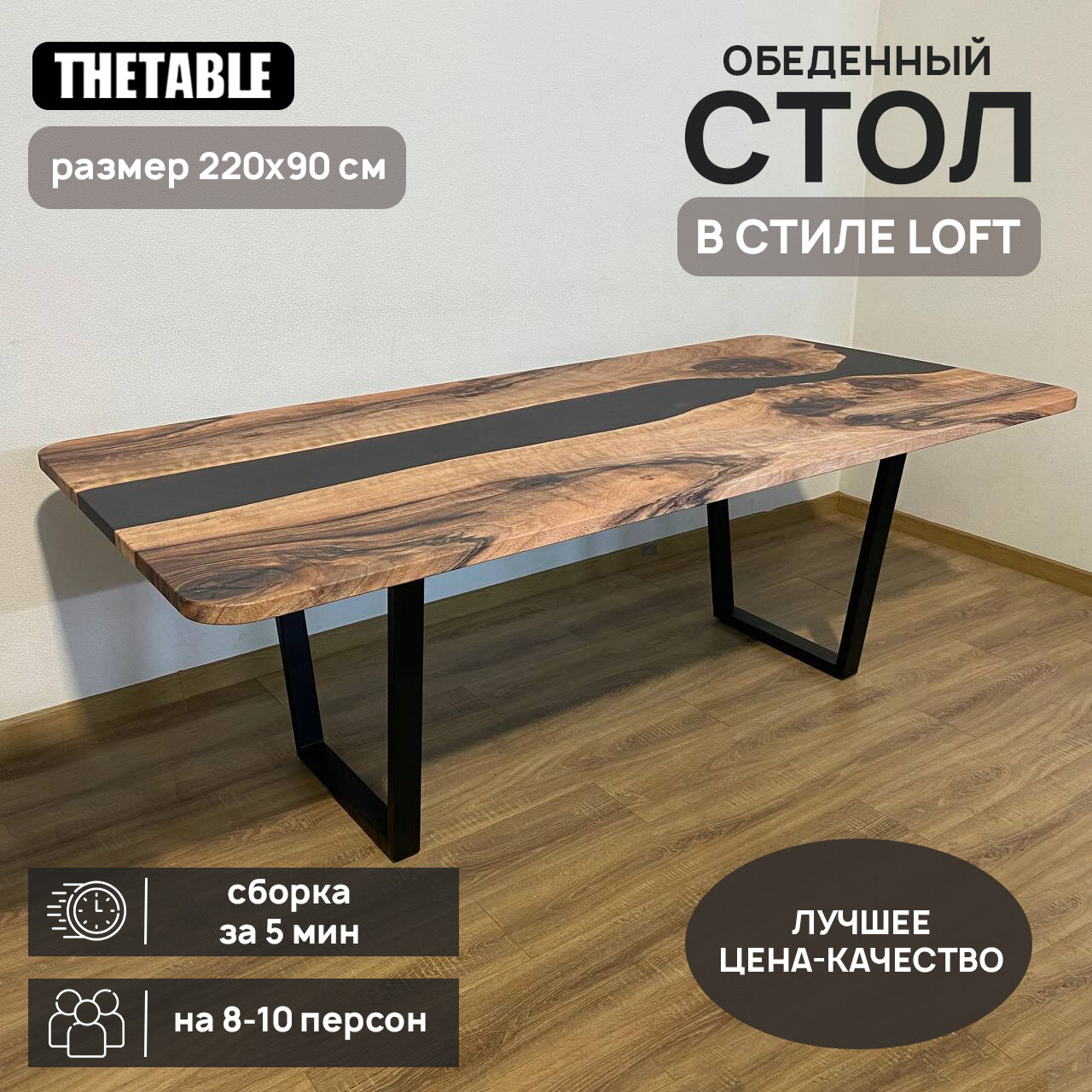 Стол кухонный обеденный THETABLE 220х90 см 3.12/2.1: сравнение цен, характеристики, фото, актуальное наличие и цены.