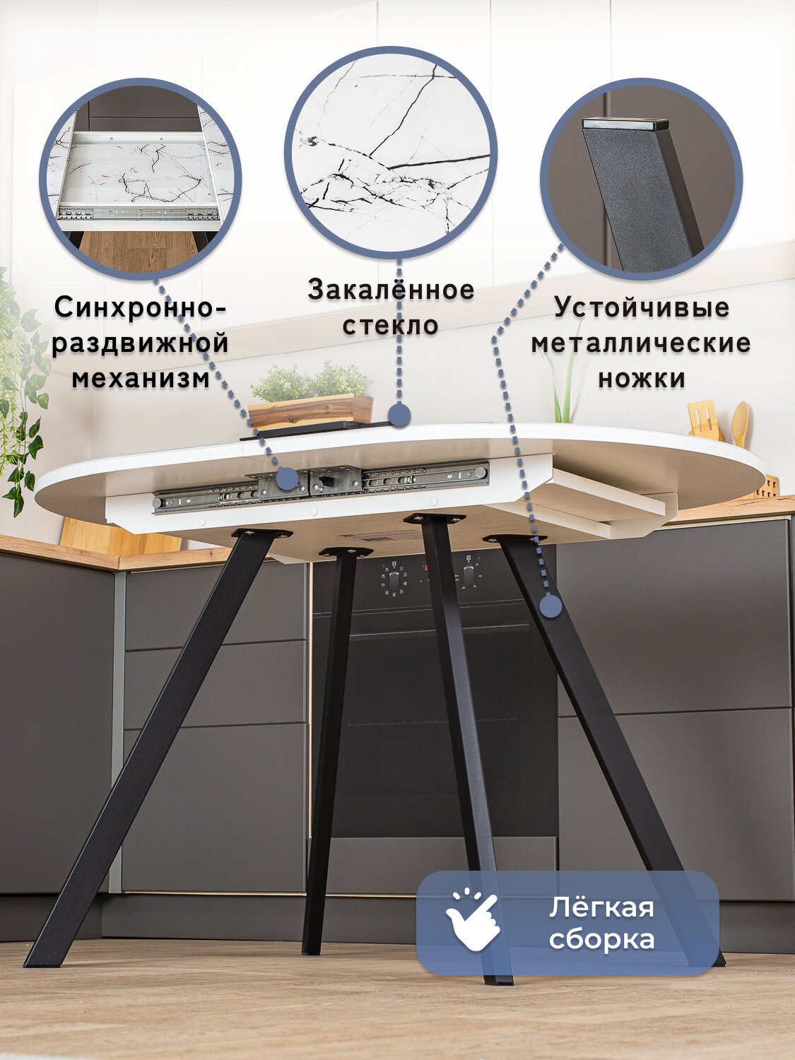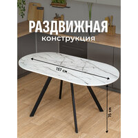 Стол кухонный, стеклянный, овальный, раздвижной, Романс О-1 Бел стп-БМ 95 ЧР, 120х80, раскладной, обеденный, белый мрамор: сравнение цен, характеристики, фото, актуальное наличие и цены.