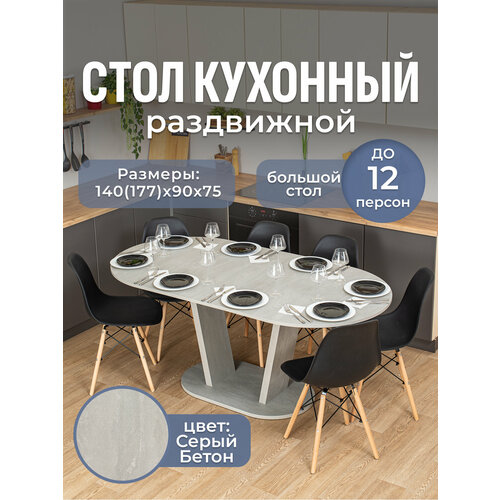 Стол кухонный овальный раздвижной Вальс О-2 СБ 03-2 СБ 140х90, раскладной, серый бетон: сравнение цен, характеристики, фото, актуальное наличие и цены.