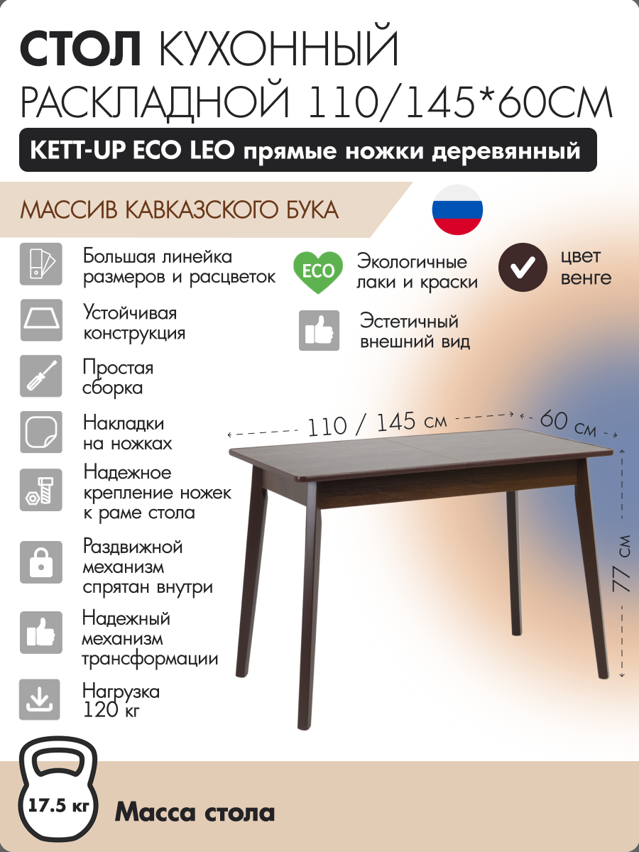 Стол кухонный раскладной 110/145*60см KETT-UP ECO LEO прямые ножки темный орех деревянный: сравнение цен, характеристики, фото, актуальное наличие и цены.