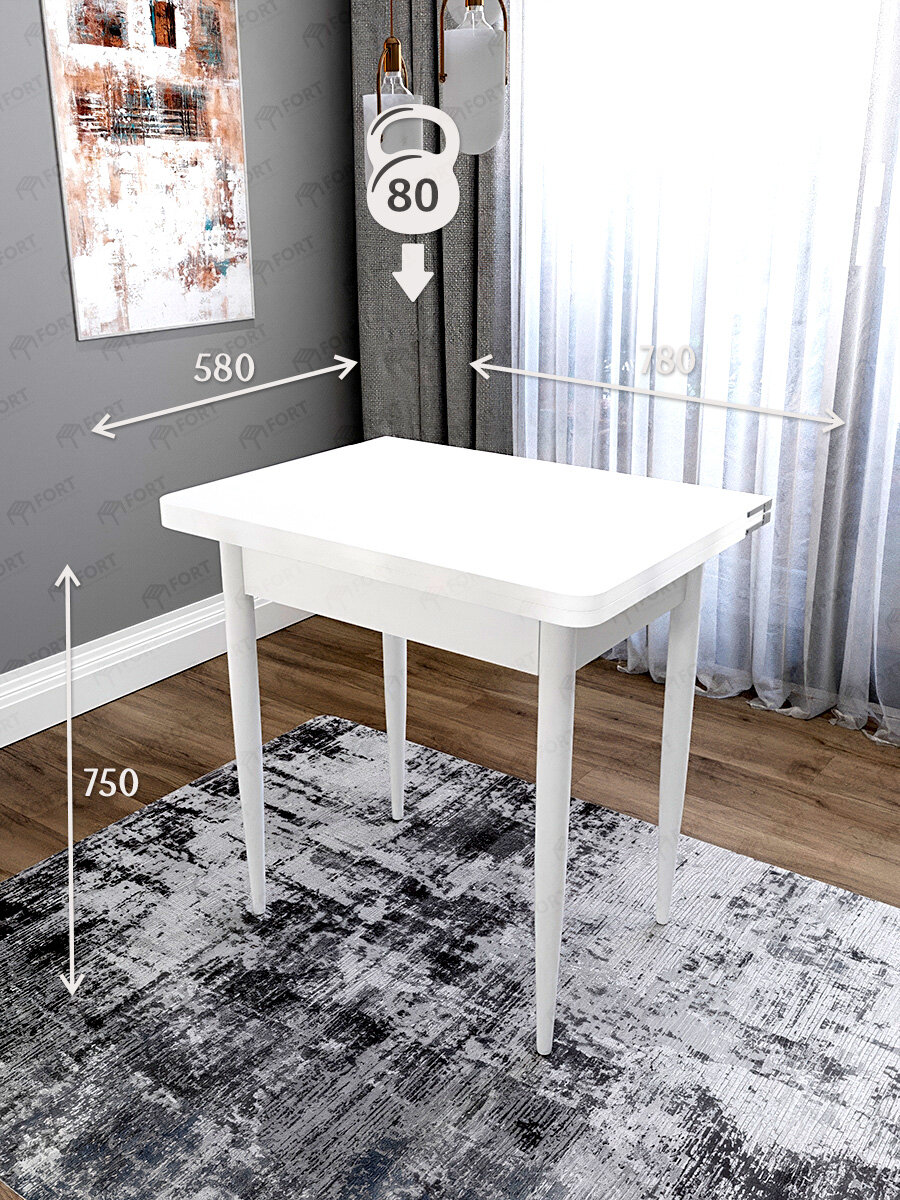 Стол кухонный раскладной FORTmeb Ломберный 78х58х75 см, Белый, ноги конус белые: сравнение цен, характеристики, фото, актуальное наличие и цены.