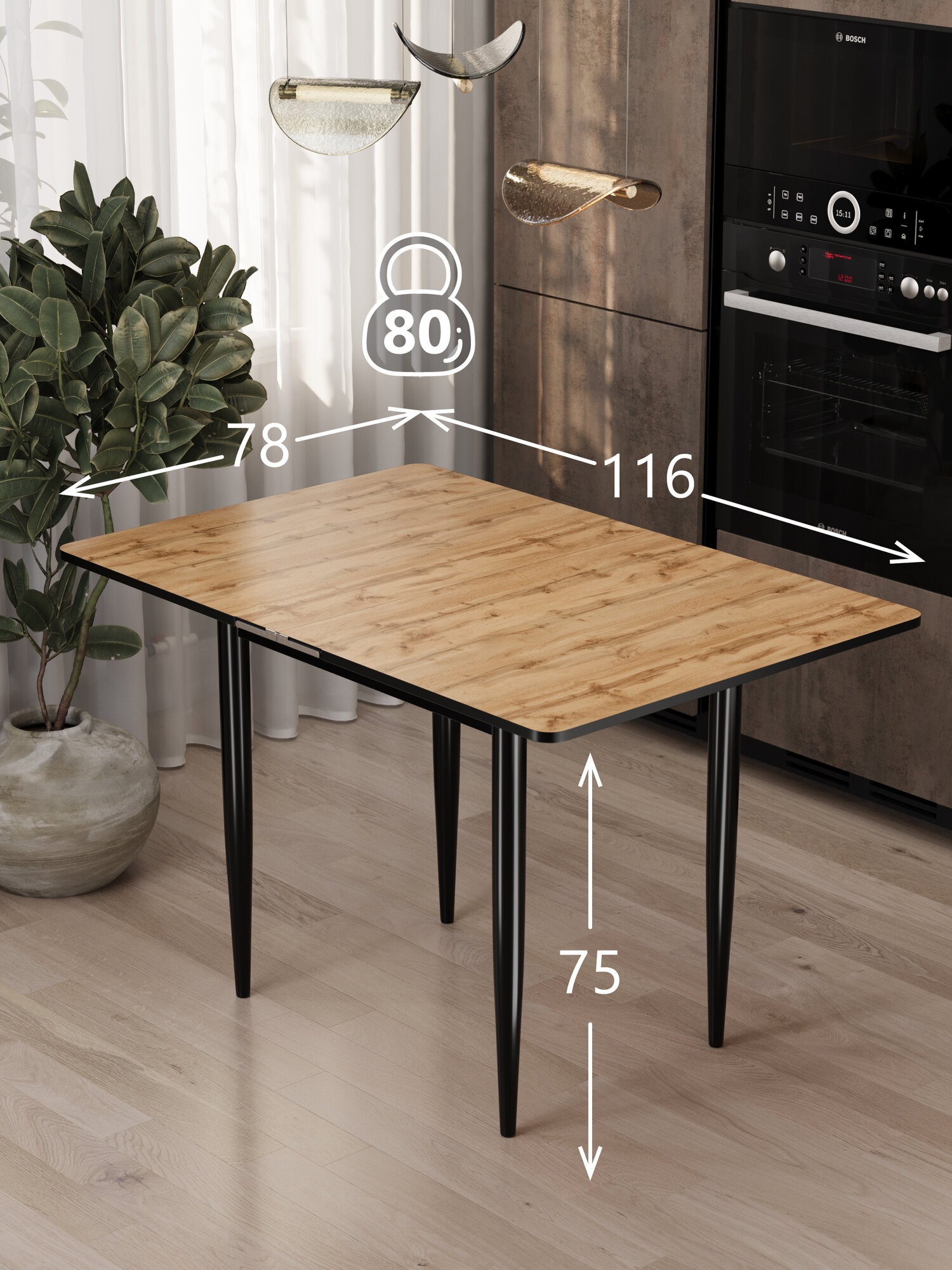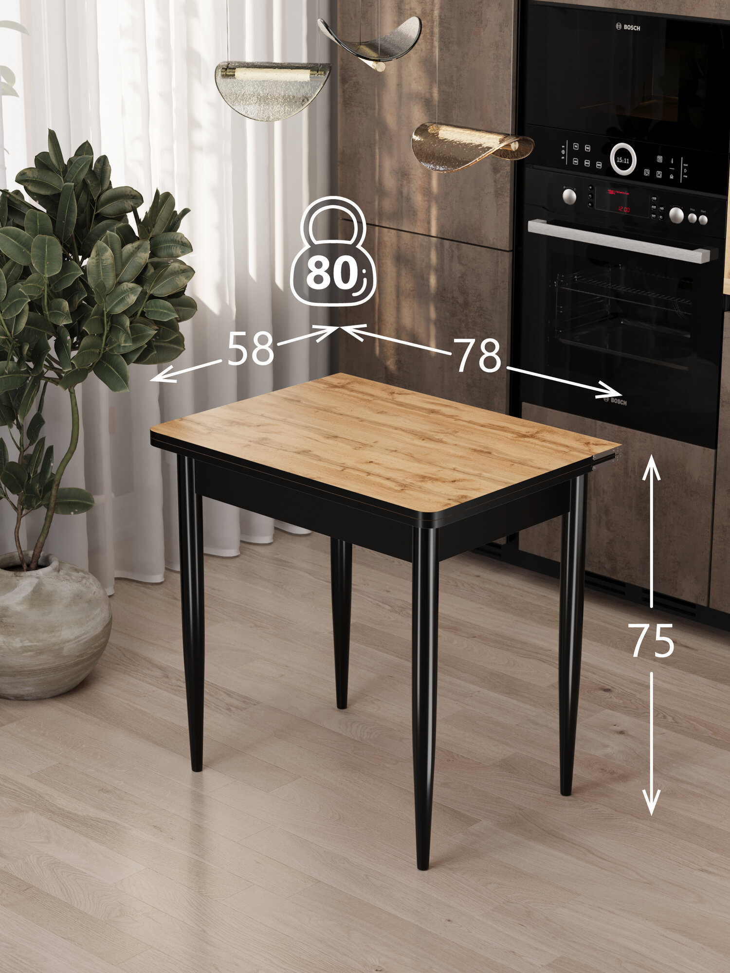 Стол кухонный раскладной FORTmeb Ломберный 78х58х75 см, Дуб Вотан, ноги черные конус: сравнение цен, характеристики, фото, актуальное наличие и цены.