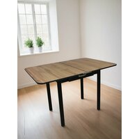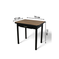 Компактный раскладной стол с ящиком из высококачественной ЛДСП идеально подойдет для кухни или гостиной. В собранном виде этот стол сэкономит пространство, а в разобранном можно разместить до восьми гостей. Кроме функции обеденного стола, он также может быть использован как журнальный, игральный, письменный или декоративный столик. Надежные металлические ножки с регулируемыми подпятниками позволяют изменить высоту стола в случае, если он шатается из-за неровной поверхности пола. Расстояние между опорами составляет по длине 57 см, по ширине - 37 см. Максимальная распределенная нагрузка на стол составляет 80 кг, а высота стола - 77 см.