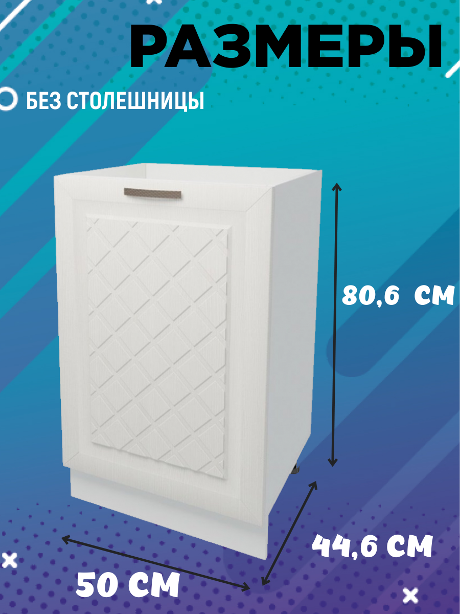 Тумба имеет размеры 50x81x45 см, что делает ее компактной и удобной для размещения даже на небольшой кухне.