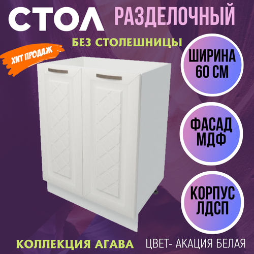 Стол кухонный разделочный Н800 «Агава» цвета «Акация белая» — напольный кухонный модуль.