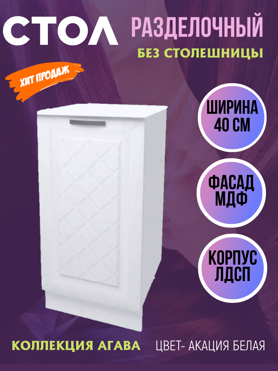 Стол кухонный разделочный Агава, цвет Акация белая, МДФ, ширина 40 см: сравнение цен, характеристики, фото, актуальное наличие и цены.