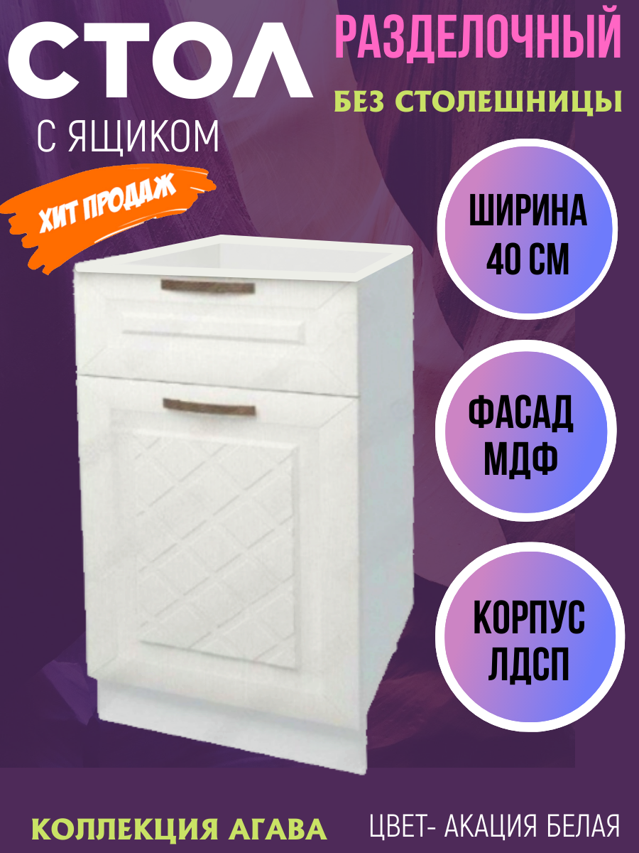 Стол кухонный разделочный с ящиком «Агава» цвета «Акация белая» (модель Н400-1Я):