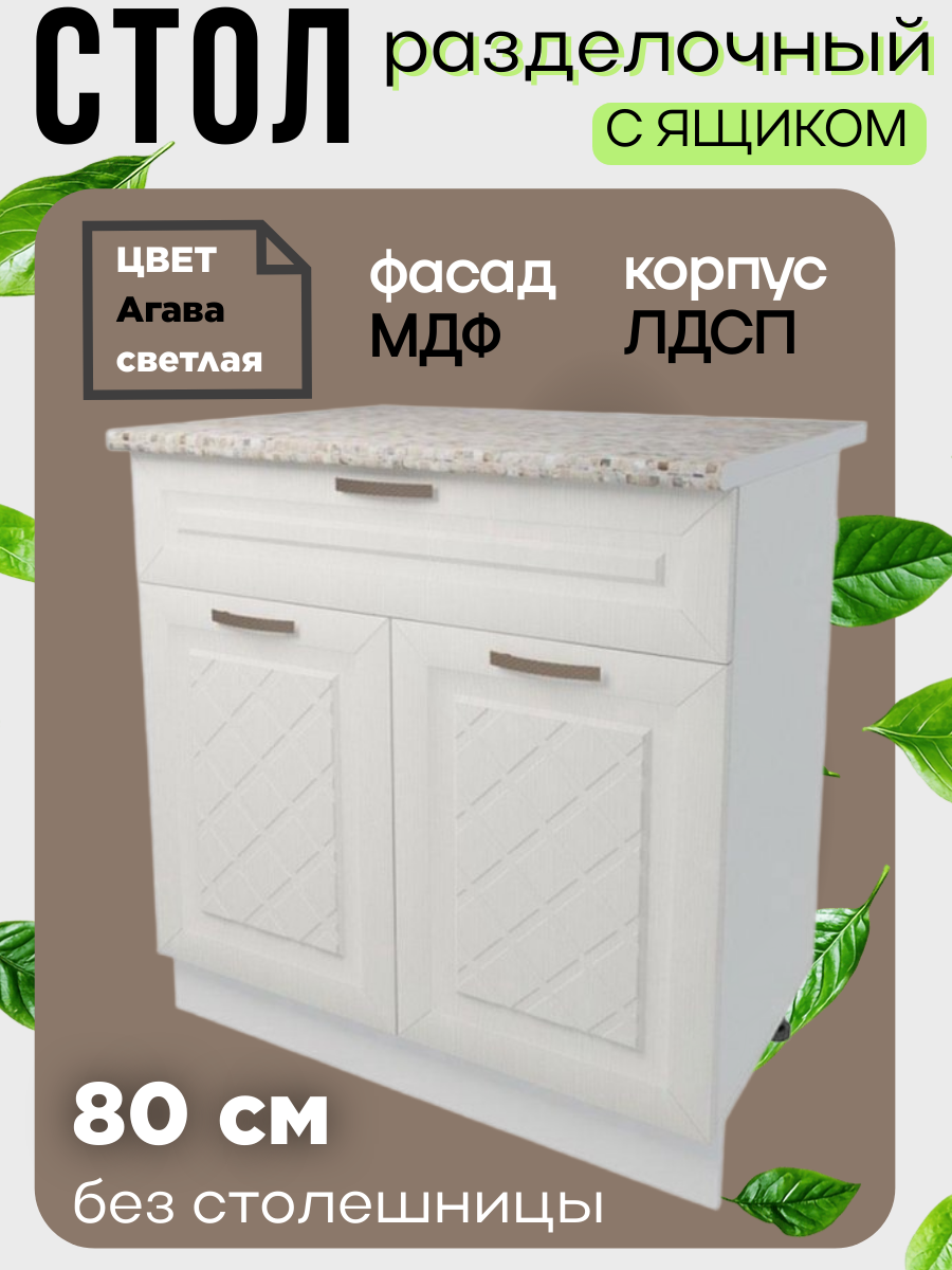 Стол кухонный разделочный с 1 ящиком, без столешницы, ширина 80 см, цвет Агава светлая: сравнение цен, характеристики, фото, актуальное наличие и цены.