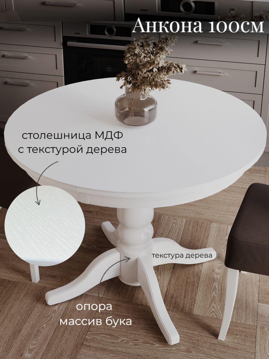Стол кухонный раздвижной круглый деревянный белый Анкона 100(140)х100х76 Пирамида26: сравнение цен, характеристики, фото, актуальное наличие и цены.