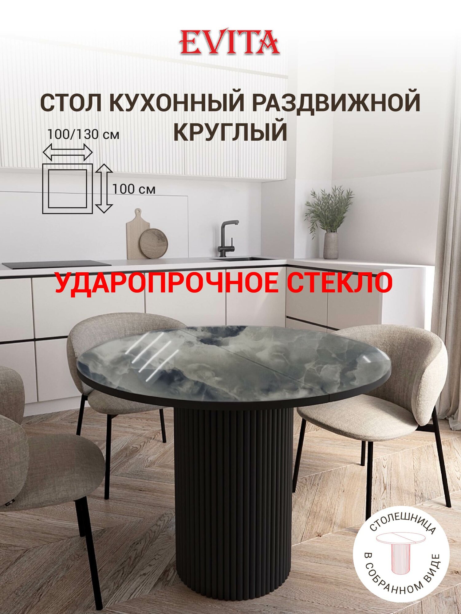Стол кухонный раздвижной круглый стеклянный на одной ножке 100(130)х100х76 Мрамор Серый/ Черный / стол обеденный: сравнение цен, характеристики, фото, актуальное наличие и цены.