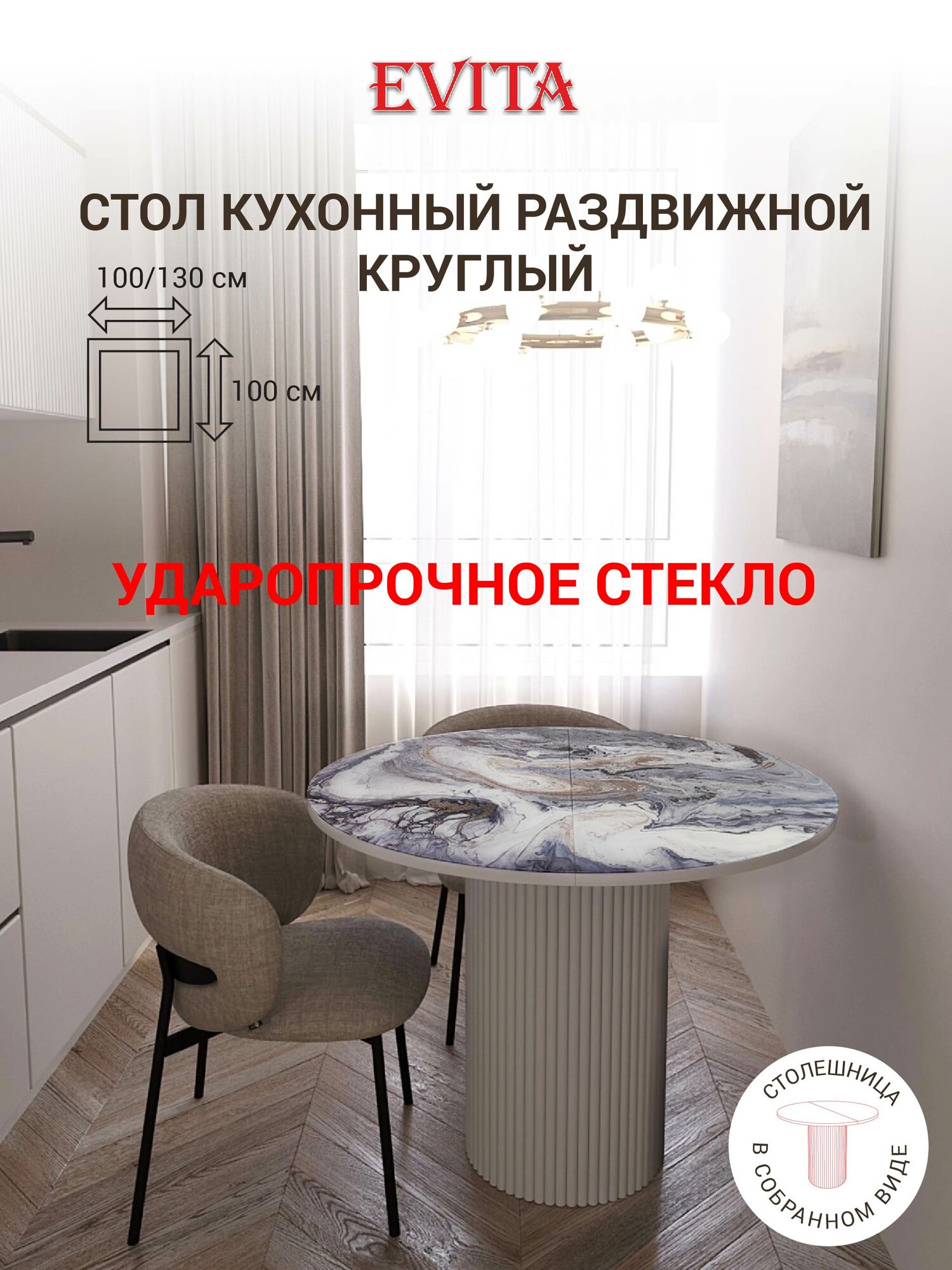 Стол кухонный раздвижной круглый стеклянный на одной ножке 100(130)х100х76 Мрамор Синий /Белый / стол обеденный: сравнение цен, характеристики, фото, актуальное наличие и цены.