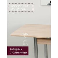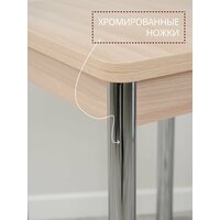 Прочность и надежность: Каркас и столешница выполнены из качественного ЛДСП толщиной 16 мм, а хромированные ножки регулируются по высоте, обеспечивая устойчивость.