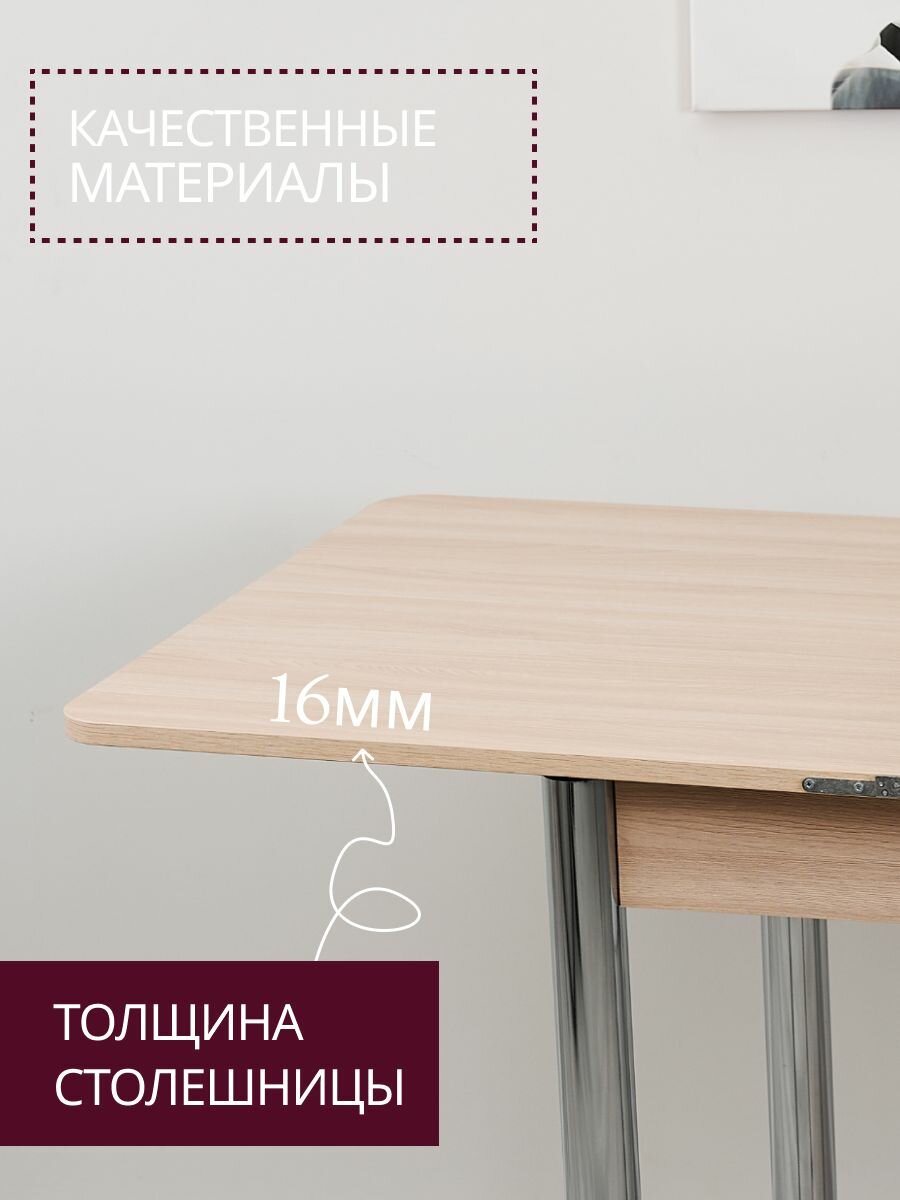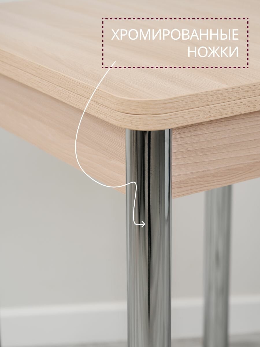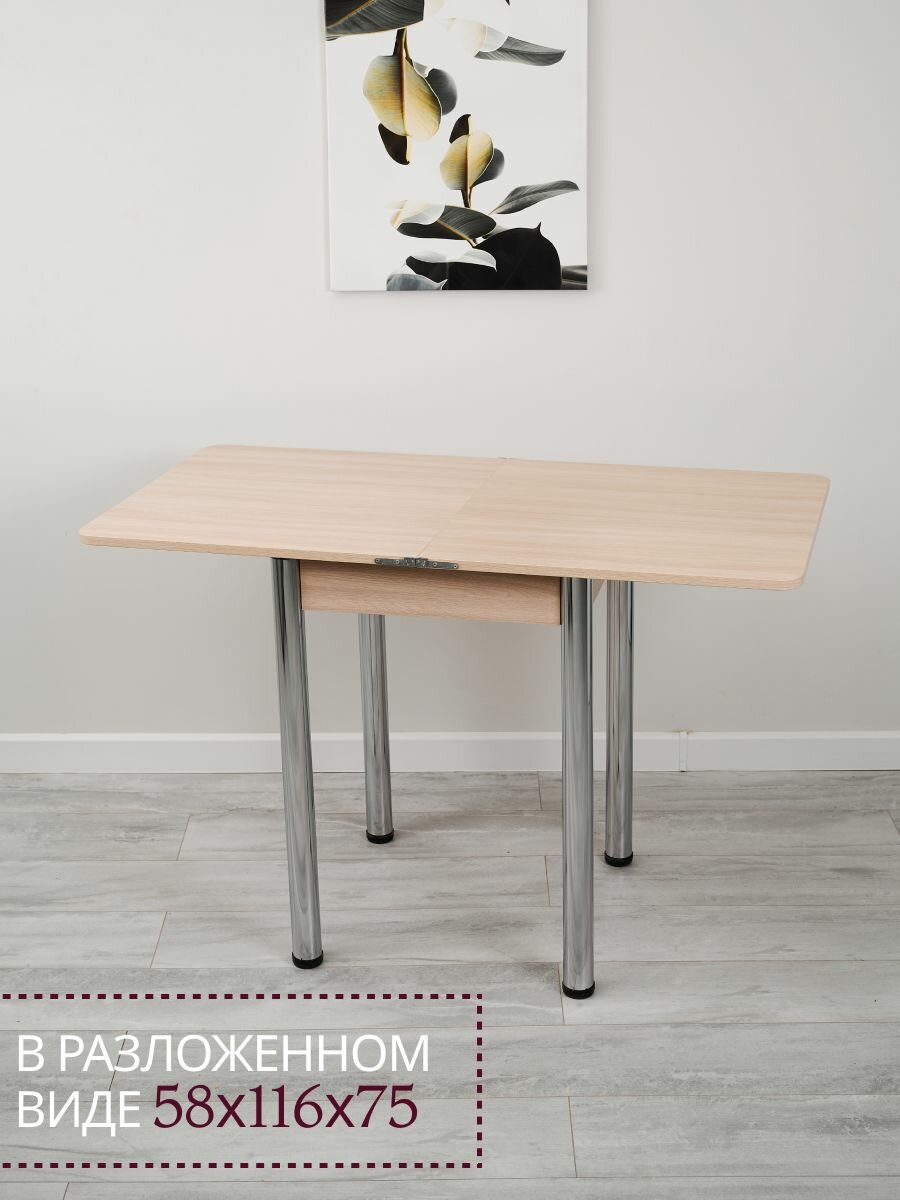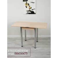 Компактный и функциональный: Размеры в сложенном виде – 58х58х75 см, а в разложенном – 58х116х75 см. Подходит для небольшой кухни, но при необходимости позволяет разместить до 8 человек.