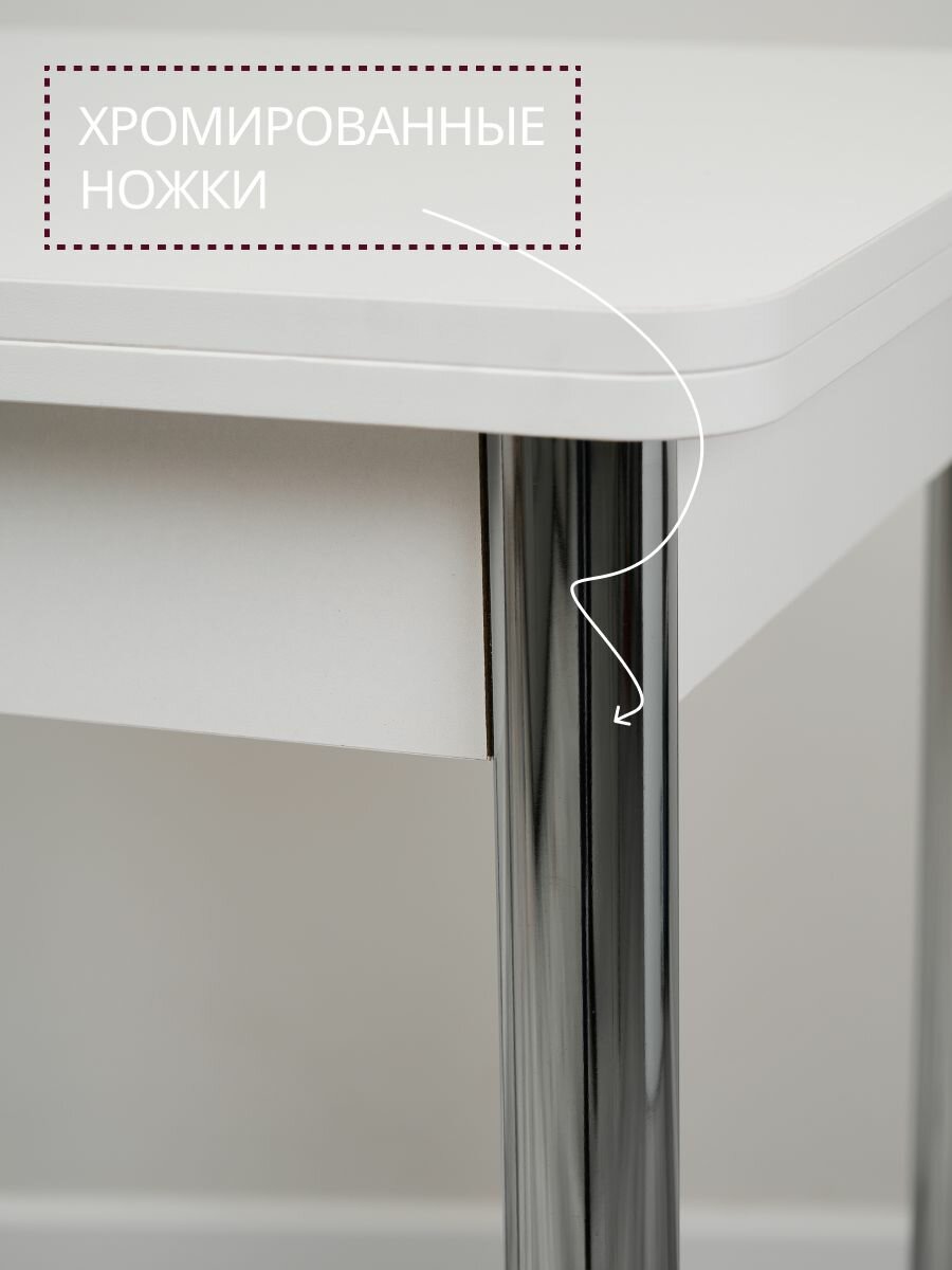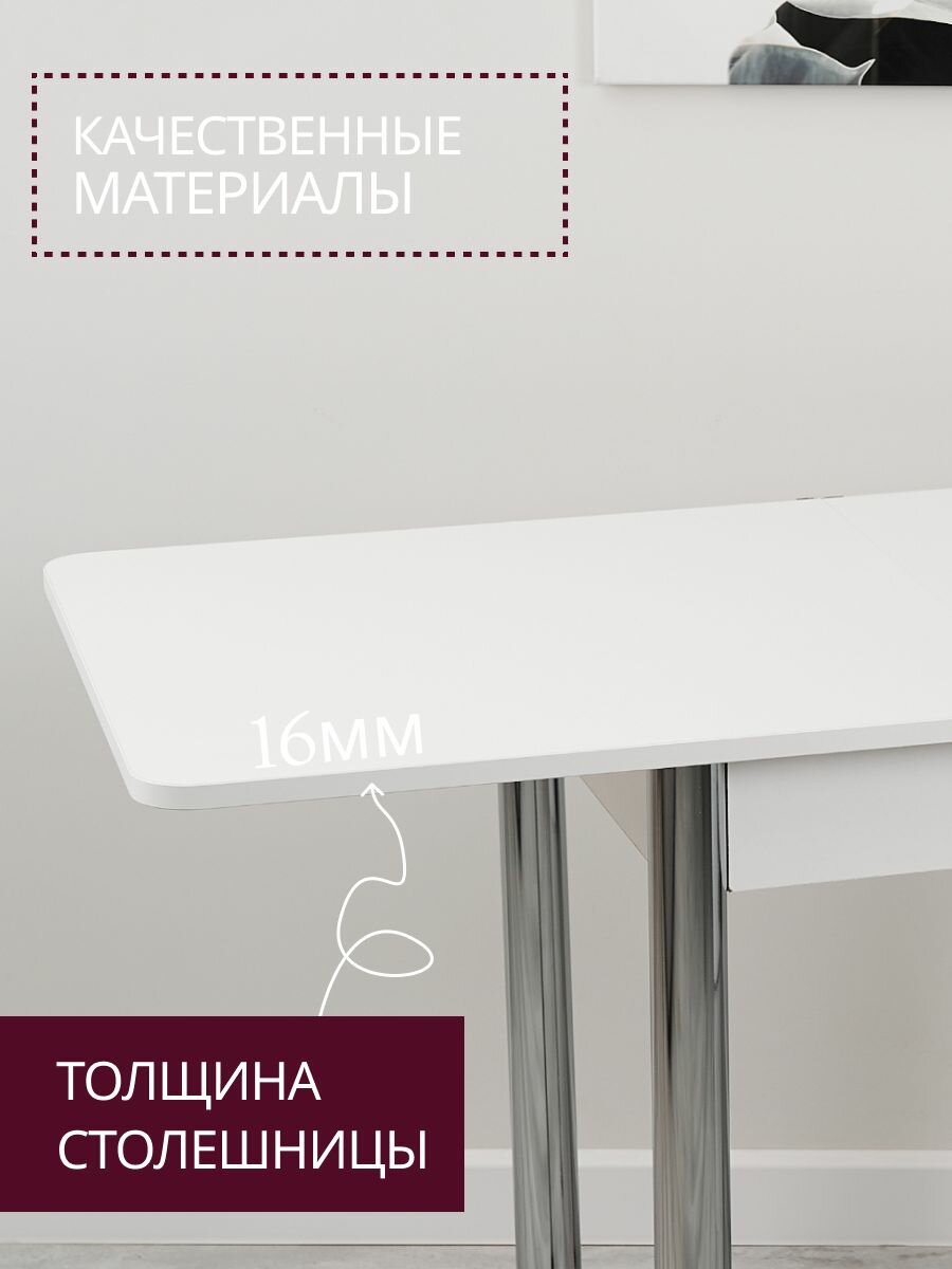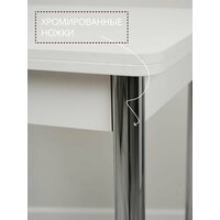 Прочность и надежность: Каркас и столешница выполнены из качественного ЛДСП толщиной 16 мм, а хромированные ножки регулируются по высоте, обеспечивая устойчивость.