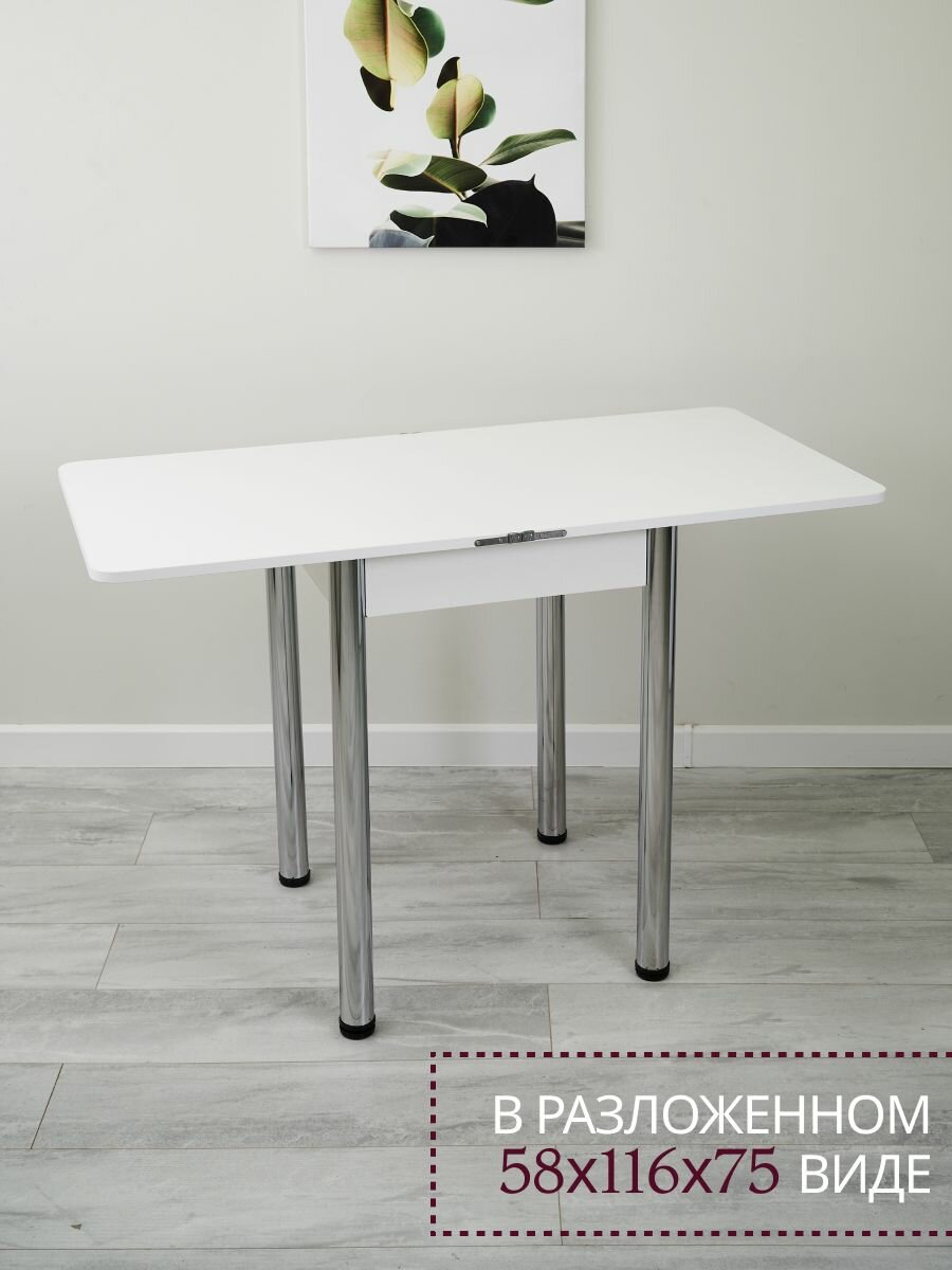 Компактный и функциональный: Размеры в сложенном виде – 58х58х75 см, а в разложенном – 58х116х75 см. Подходит для небольшой кухни, но при необходимости позволяет разместить до 8 человек.