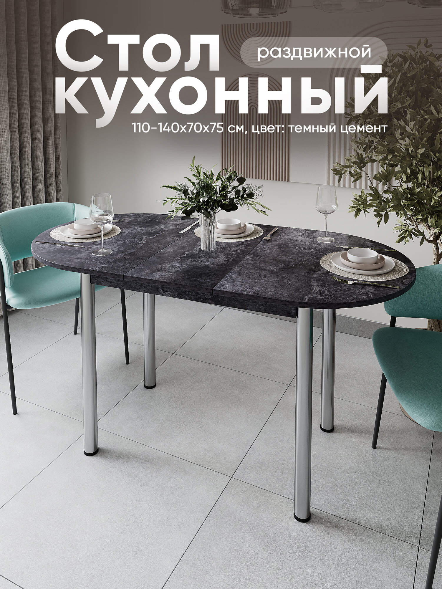Купить Стол кухонный раздвижной овальный, Темный цемент 110-140х70х75 см с доставкой по всей России. Стол кухонный раздвижной овальный, Темный цемент 110-140х70х75 см: сравнение цен, характеристики, фото, актуальное наличие и цены.