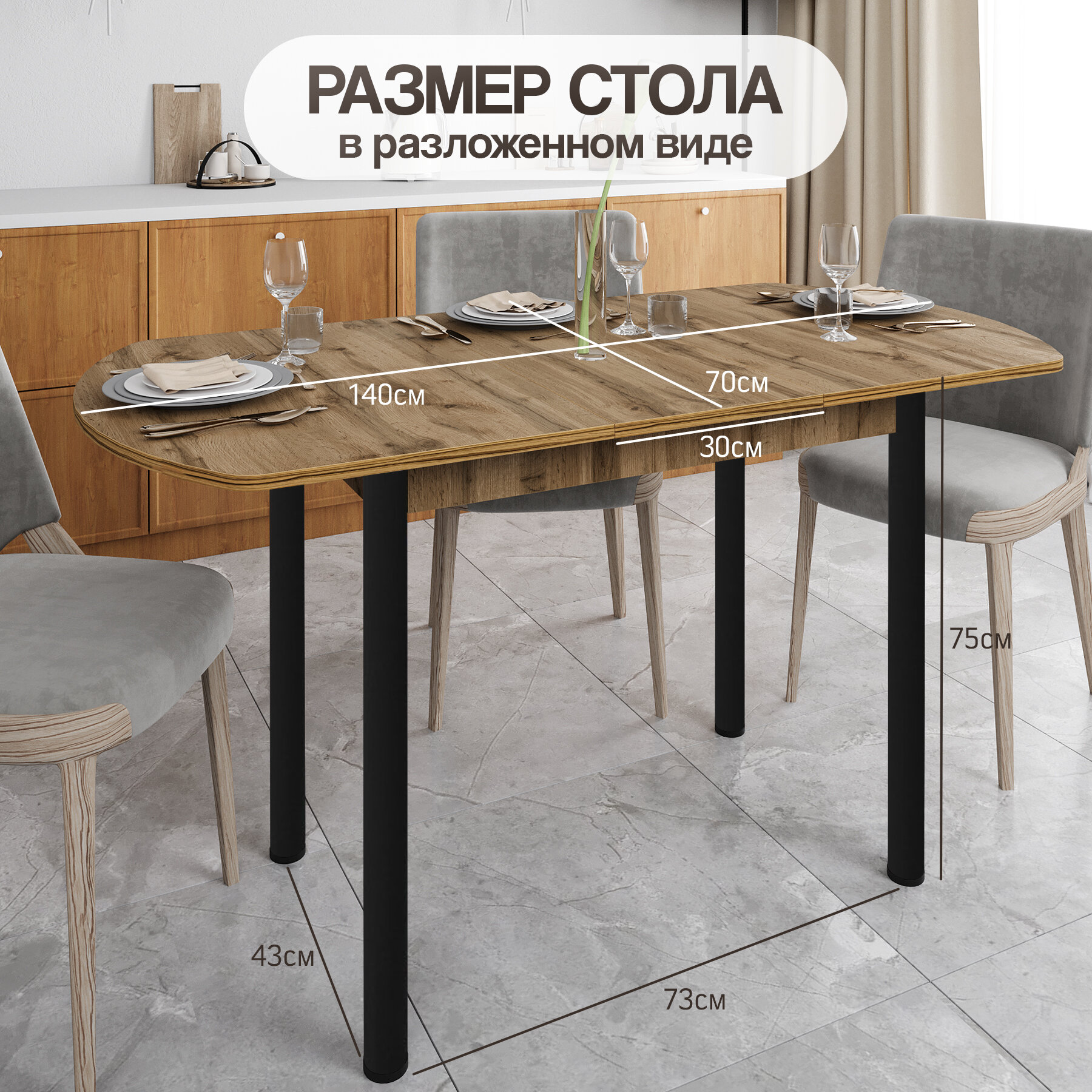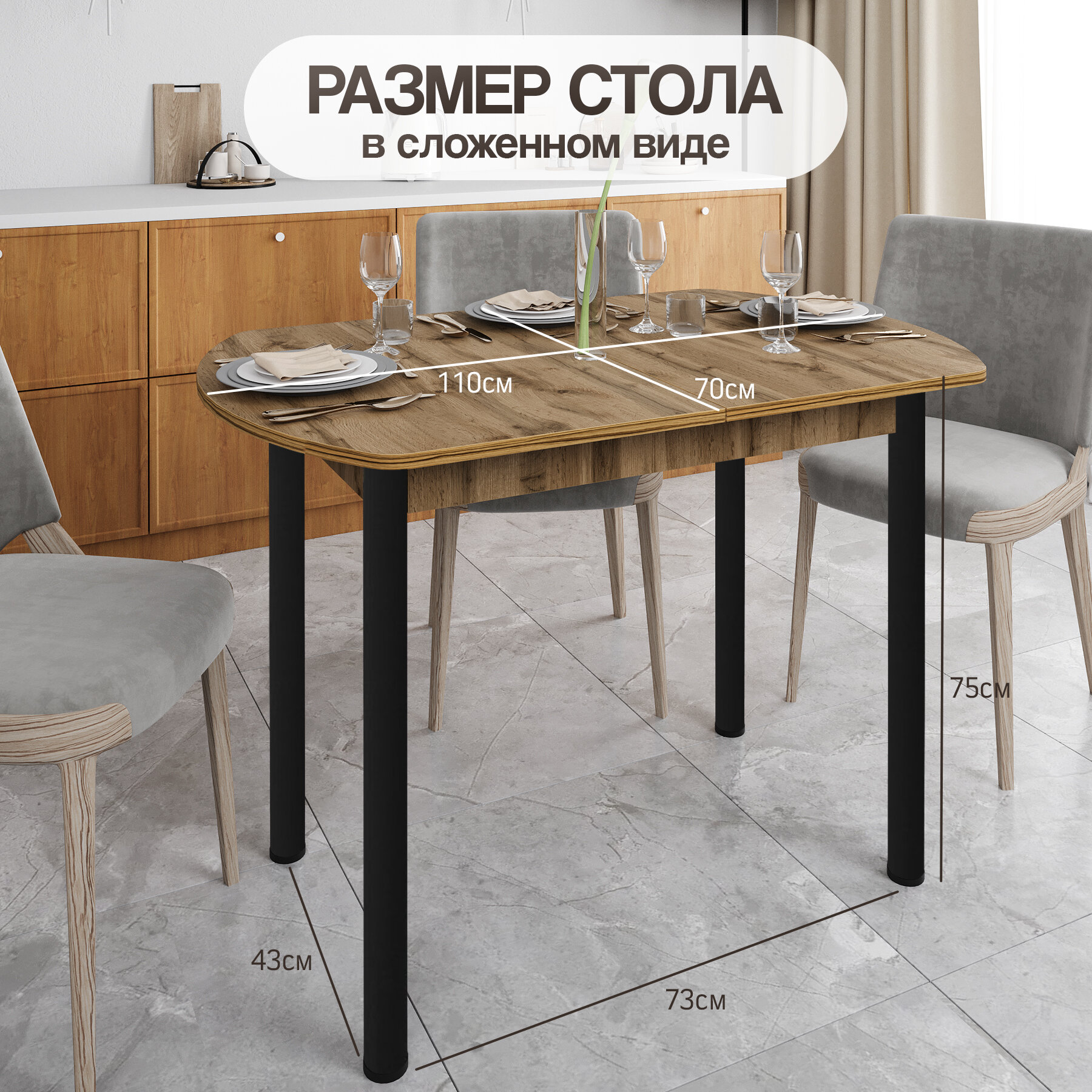 Стол кухонный раздвижной полуовальный 110-140х70х75 см из ЛДСП для кухни и гостиной, дуб вотан: сравнение цен, характеристики, фото, актуальное наличие и цены.