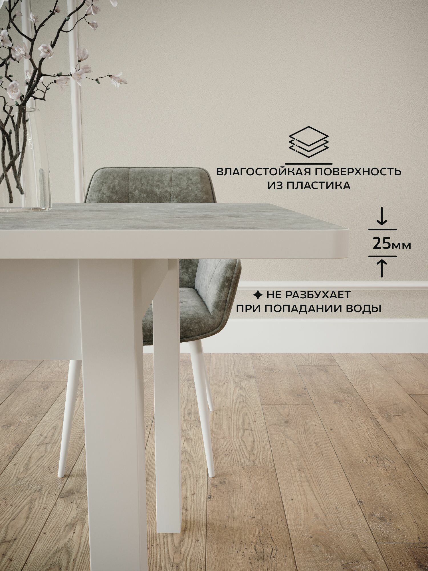 Стол кухонный раздвижной Прямоугольный, пластик Тунис серый, 120(150)х80 cм, ноги квадро белые: сравнение цен, характеристики, фото, актуальное наличие и цены.