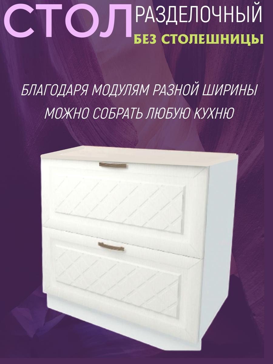 Стол кухонный разделочный Н800-2Я «Агава» цвета «Акация белая» — напольный кухонный модуль с двумя большими ящиками.