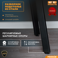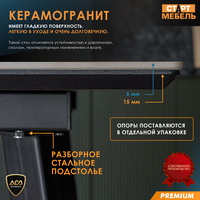 Создан для настоящих ценителей стиля и комфорта одновременно. Крепкий керамогранит в сочетании с надежным стальным подстольем, обеспечит наилучшую функциональность. Регулируемые шарнирные опоры позволят отрегулировать высоту и максимальную устойчивость даже при неровных полах.