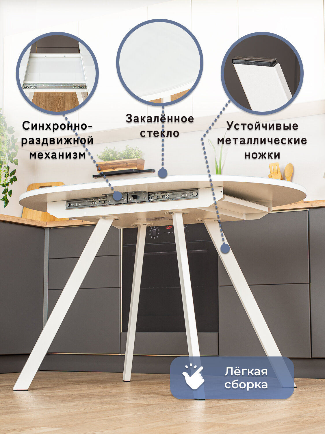 Стол кухонный, стеклянный, овальный, раздвижной, Романс О-1 Бел стп-Бел 95 Бел, 120х80, раскладной, обеденный, белый: сравнение цен, характеристики, фото, актуальное наличие и цены.