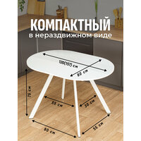 Стол кухонный, стеклянный, овальный, раздвижной, Романс О-1 Бел стп-Бел 95 Бел, 120х80, раскладной, обеденный, белый