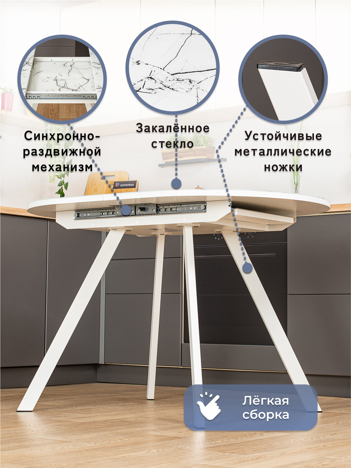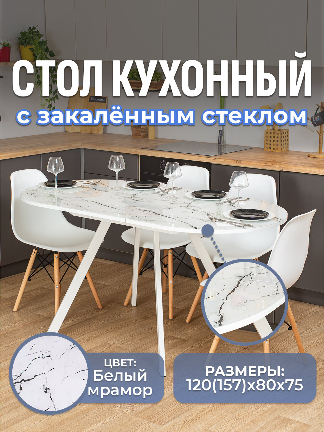 Стол кухонный, стеклянный, овальный, раздвижной, Романс О-1 Бел стп-БМ 95 Бел, 120х80, раскладной, обеденный, белый мрамор: сравнение цен, характеристики, фото, актуальное наличие и цены.