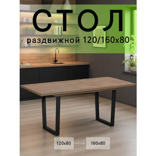 Стол кухонный Терминал KANSAS 120/160х80, Дуб Канзас/черный, раскладной, лофт: сравнение цен, характеристики, фото, актуальное наличие и цены.
