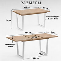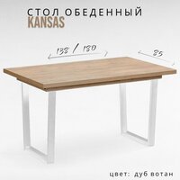 Стол кухонный Терминал KANSAS 138/180х85, Дуб вотан/белый, раскладной, лофт: сравнение цен, характеристики, фото, актуальное наличие и цены.