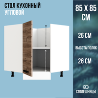 Купить Стол кухонный угловой, ЛДСП, цвет Дуб Горный / белый, ширина 85 см с доставкой по всей России.