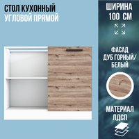 Купить Стол кухонный угловой прямой, ЛДСП, цвет Дуб Горный / белый, ширина 100 см с доставкой по всей России.