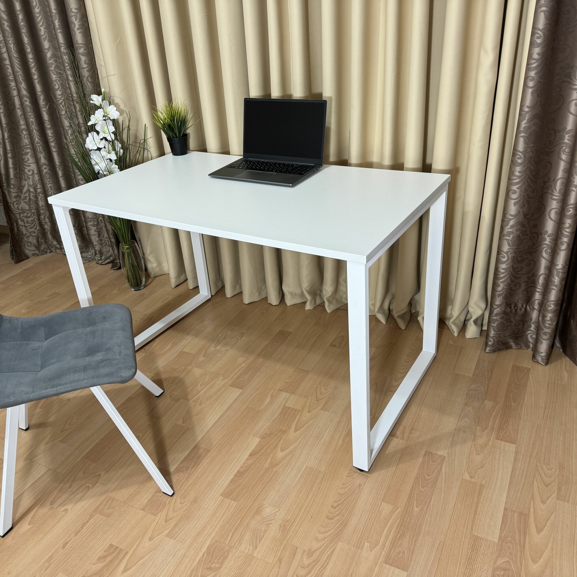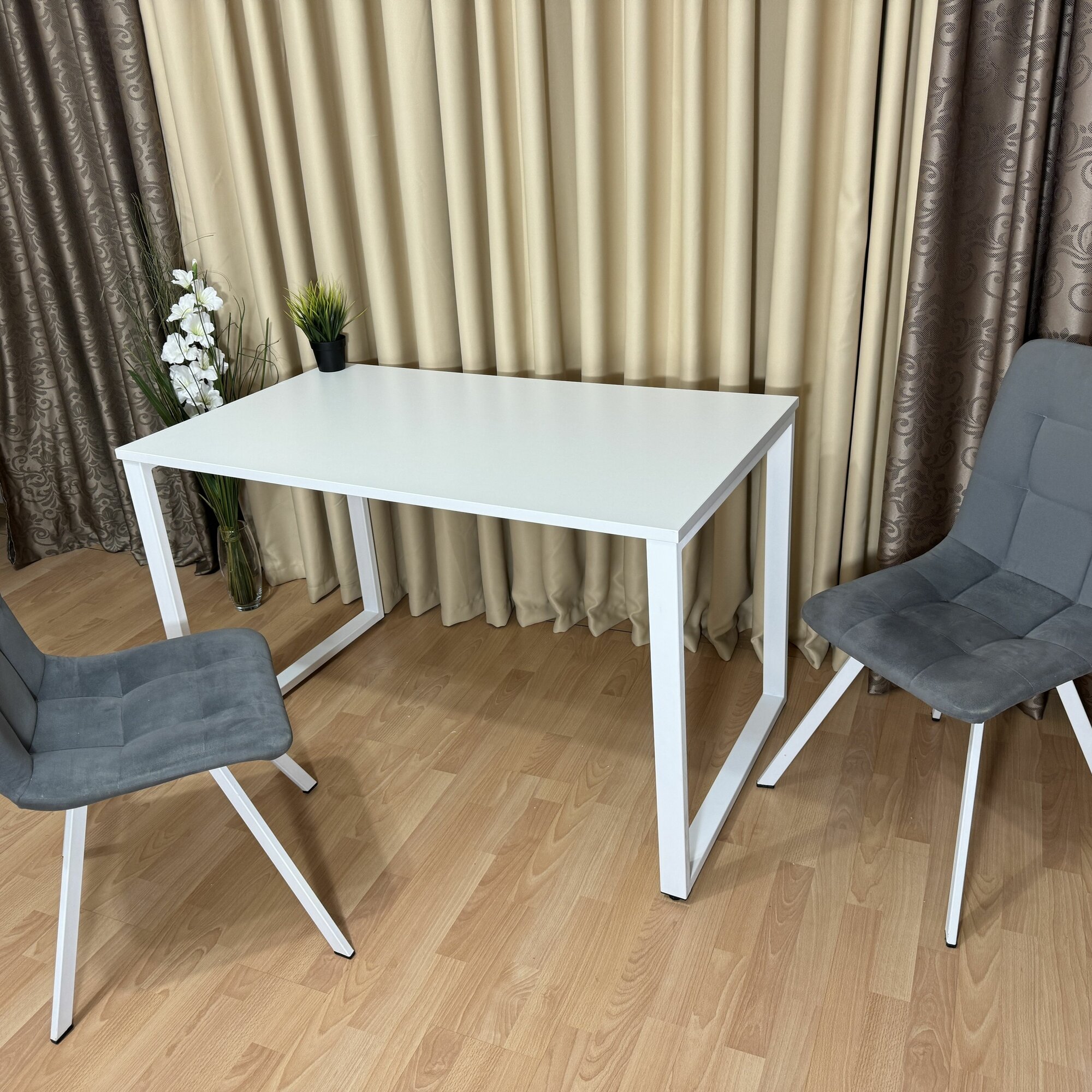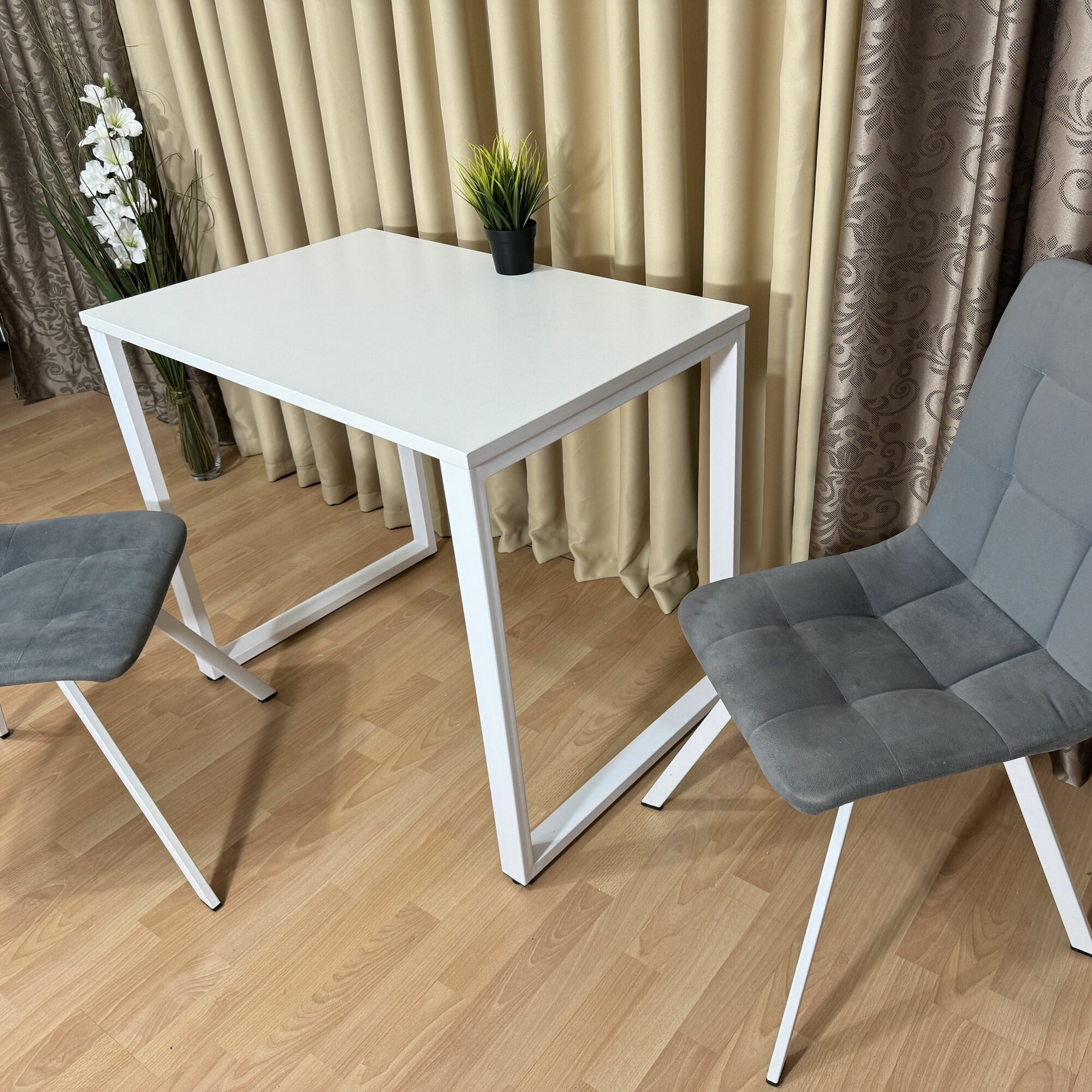 Стол лофт обеденный Белый 80*80 см. Ножки лофт белые