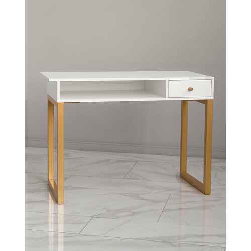 Стол маникюрный Johny Wood, металлический каркас, белый/золотой, с ящиком, 110х50х80см: сравнение цен, характеристики, фото, актуальное наличие и цены.