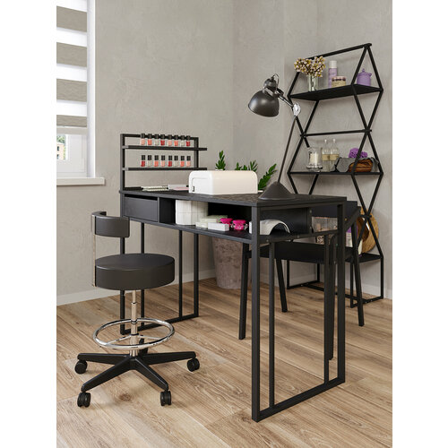 Стол маникюрный с полками и ящиком для салона красоты и офиса узкий KM LOFT черный/черный: сравнение цен, характеристики, фото, актуальное наличие и цены.
