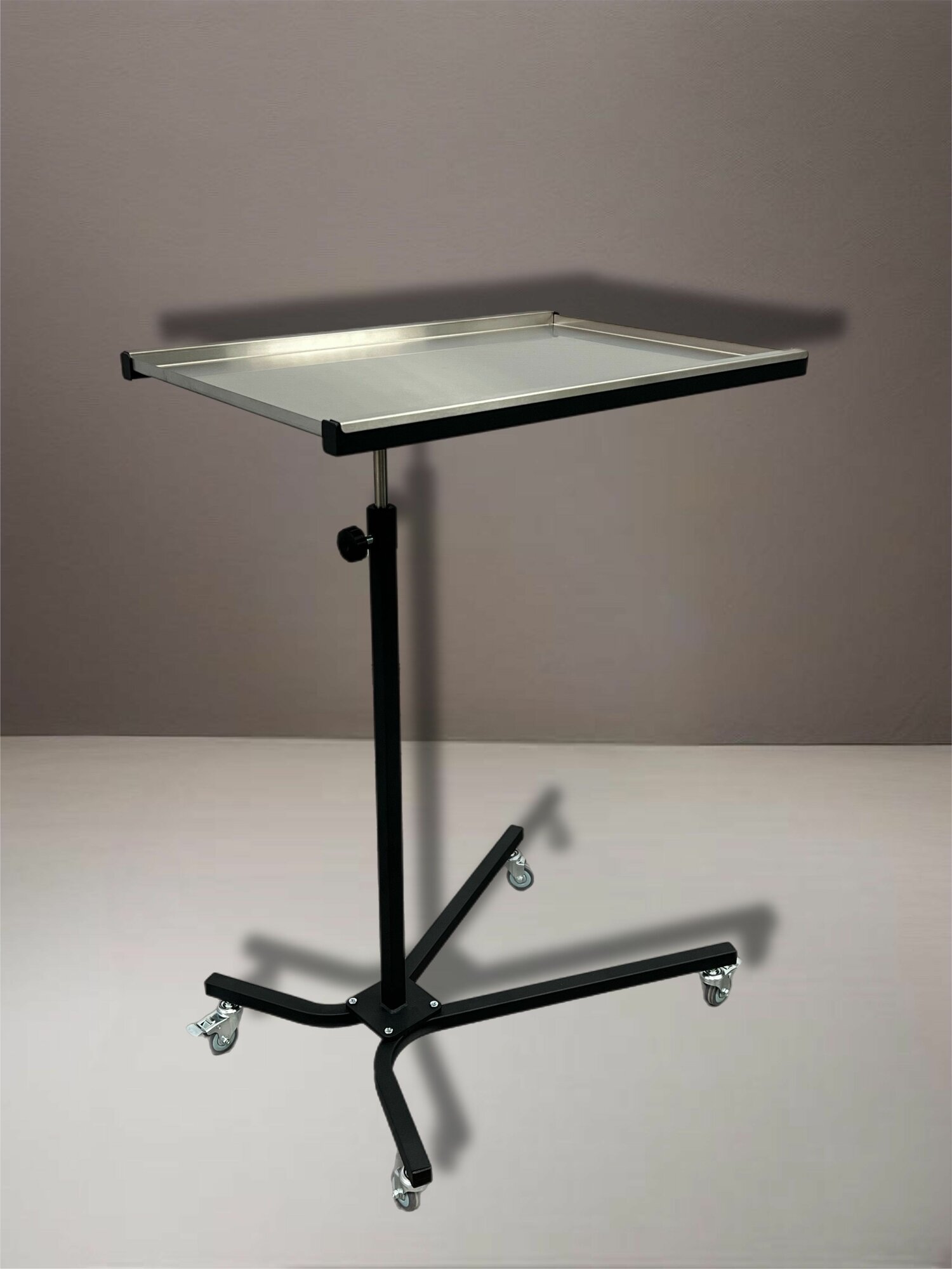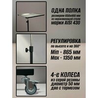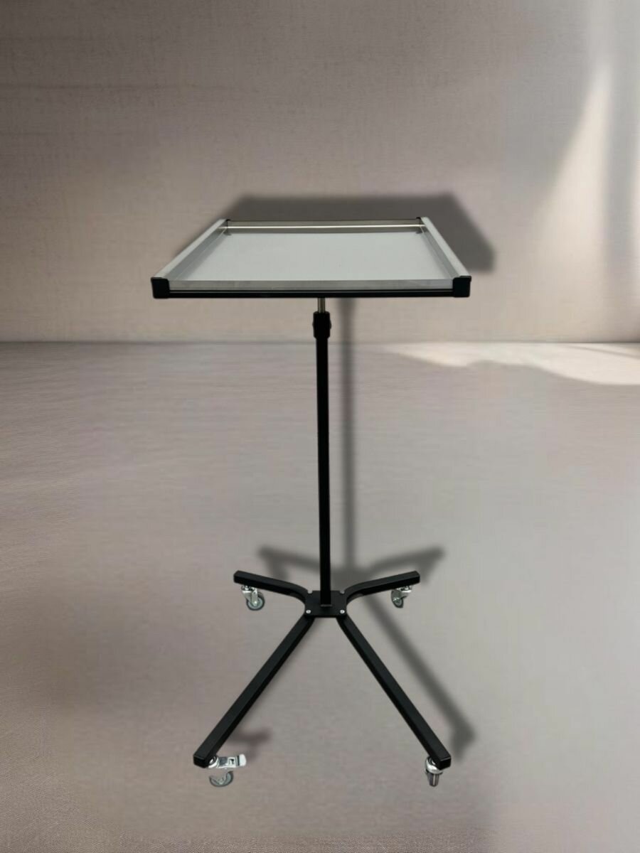 Стол медицинский инструментальный СМИ-01В используется в медицинских учреждениях, а в частности в операционных палатах, процедурных кабинетах. Предназначен для размещения медицинских инструментов, медикаментов. Столешница регулируется по высоте при помощи винта, пределы регулирования 900-1350 мм. Стол оснащен 4 самоориентирующимися колесиками из серой резины диаметром 50 мм. Основание столика: Х-ОбразноеМатериал столешницы: нержавеющая сталь, толщиной 0,8 ммМатериал выдвижной стойки: нержавеющая стальРавномерно распределенная нагрузка на столешницу: не более 10 кгГарантия на изделие: 12 месяцевРегистрационное удостоверение № РЗН 2015/3118Данный стол также может использоваться в таких сферах, как: косметология, beauty индустрия и tattoo индустрия.