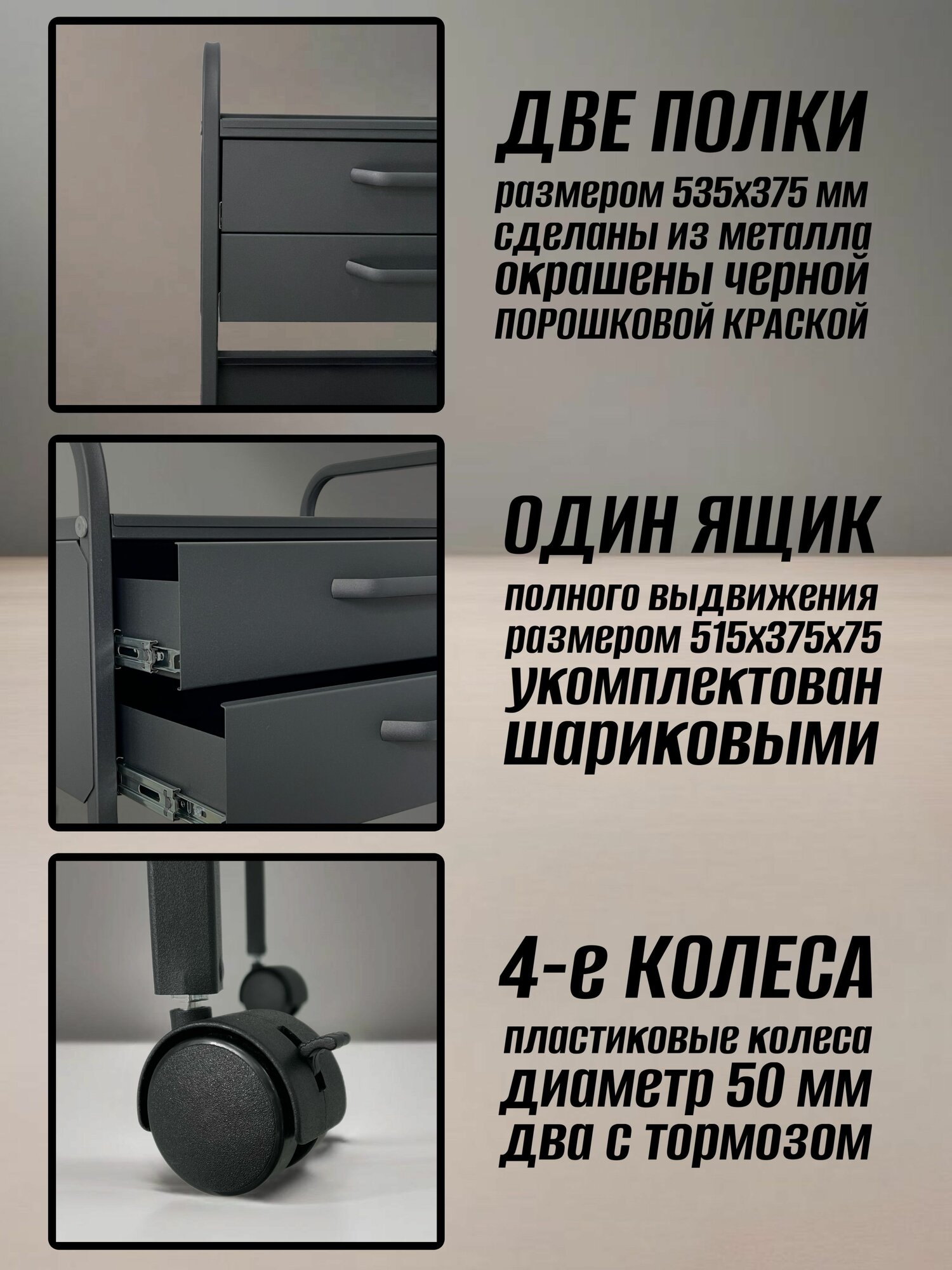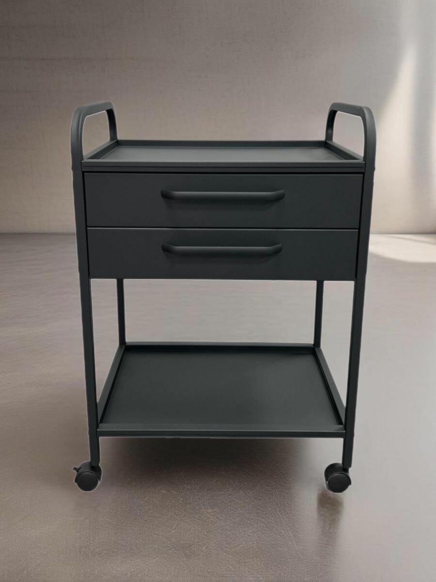 Стол медицинский инструментальный СМИ-02-02-М предназначен для размещения инструмента, лекарственных препаратов и приборов. Каркас выполнен из профильной стальной трубы 20х20 мм. Столик по умолчанию комплектуется пластиковыми колесами диаметром не менее 50 мм, два из которых с тормозом. Для крепления ящиков применяются телескопические шариковые направляющие, ручки черные. Полки изготовлены из металла. Изделие поставляется в разобранном виде, что позволяет экономить средства при перевозке в другие регионы. Габаритные размеры Д×Г×В: 580×420×850 ммКоличество ящиков: 2 штРазмеры ящика Д×Г×В: 515×375×75 ммКоличество полок: 2 штРазмер полки Д×Ш: 535×375 ммРегистрационное удостоверение № РЗН 2015/3118Данный стол также может применяться в таких сферах, как: косметология, beauty индустрия и tattoo индустрия.