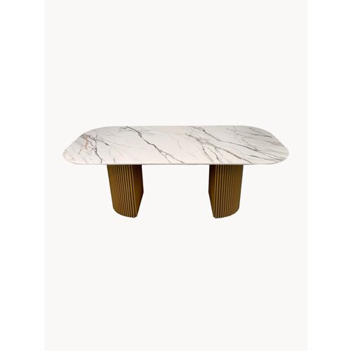 Стол Mesa design Tubos Doble - это сочетание стиля и функциональности. Он выполнен из керамогранита, что обеспечивает его долговечность и устойчивость к повреждениям. Металлическое подстолье золотого цвета добавляет изысканности и подчеркивает современный дизайн стола.