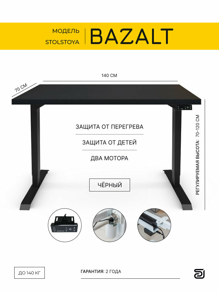 | Дополнительная информация | Регулировка высоты стола от 73 до 123 см. Нагрузка 140 кг. Управление с пульта с памятью на 4 положения |