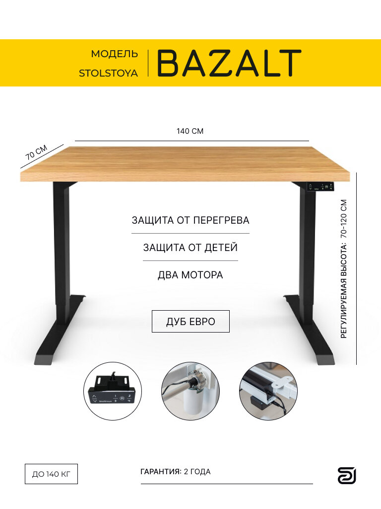 | Дополнительная информация | Регулировка высоты стола от 73 до 123 см. Нагрузка 140 кг. Управление с пульта с памятью на 4 положения |