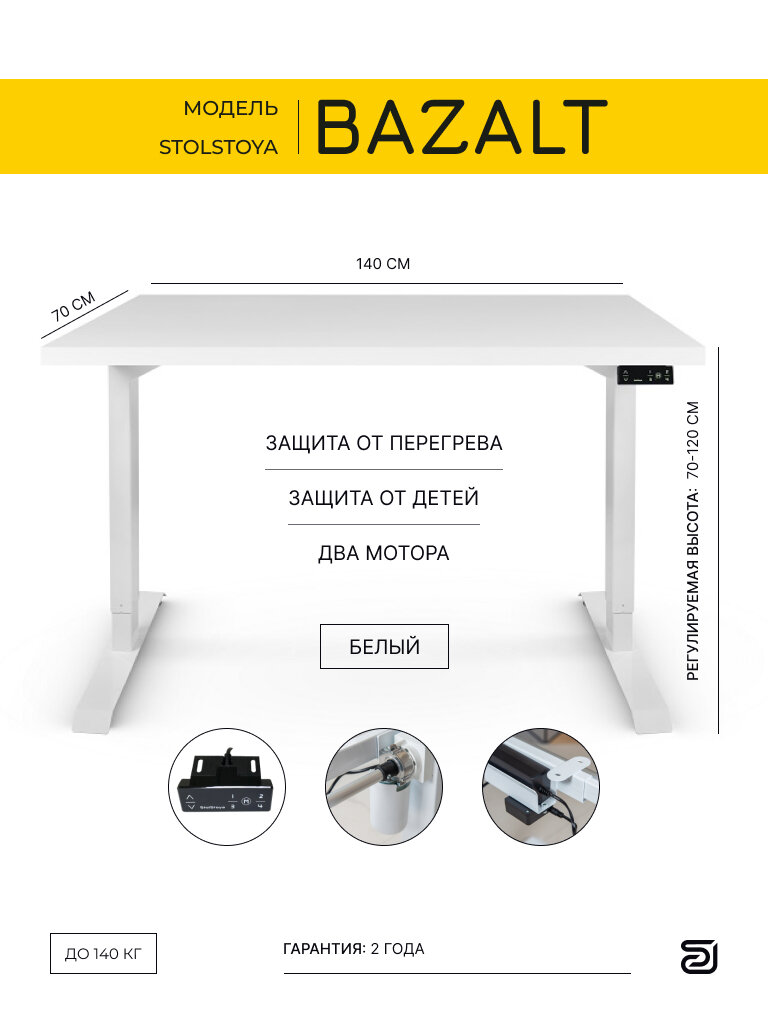 Стол на двухмоторной раме с электрической регулировкой высоты StolStoya BAZALT 140х70 SE222W140W: сравнение цен, характеристики, фото, актуальное наличие и цены.