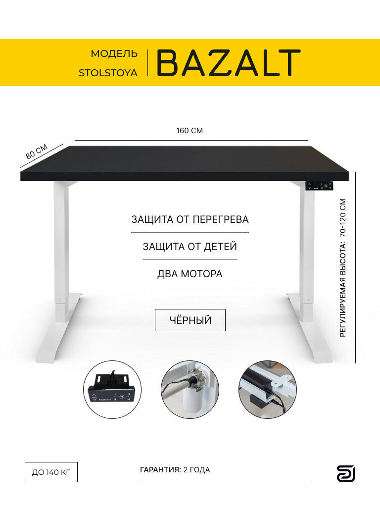 | Дополнительная информация | Регулировка высоты стола от 73 до 123 см. Нагрузка 140 кг. Управление с пульта с памятью на 4 положения |
