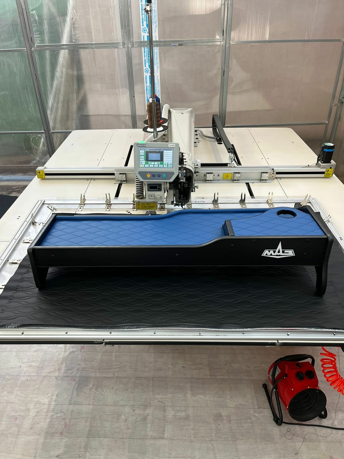 Купить Стол на торпедо для Mаз Евро с подстаканником Синяя экокожа Синий ромб с доставкой по всей России.