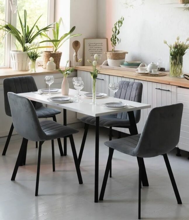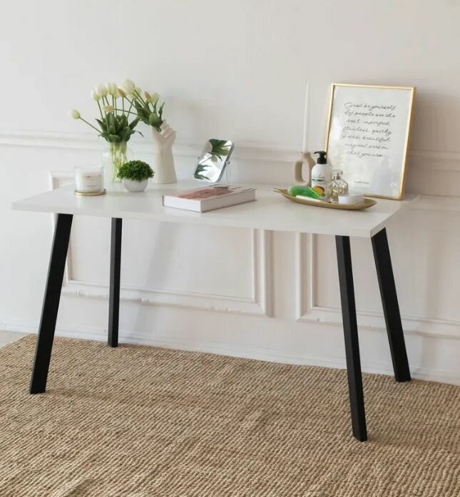 Стол ник обеденный Белый 110 * 70 * 75 см. Ножки ник черные.