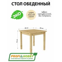 Купить Стол обеденный 80х80 см из массива сосны без покраски, Profi&Hobby с доставкой по всей России. Стол обеденный 80х80 см из массива сосны без покраски, Profi&Hobby: сравнение цен, характеристики, фото, актуальное наличие и цены.