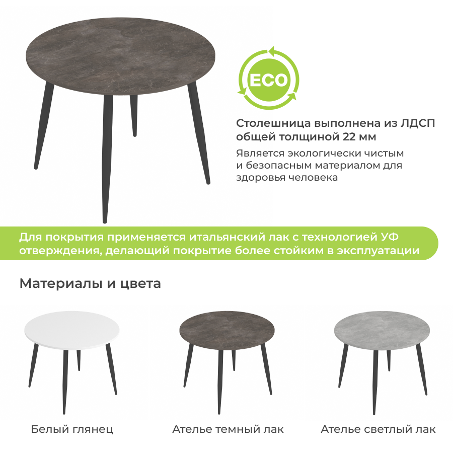 Стол обеденный Bergamo 12, BONMEBEL, Ателье темный Лак, 100х100х75 см, стол кухонный, круглый: сравнение цен, характеристики, фото, актуальное наличие и цены.