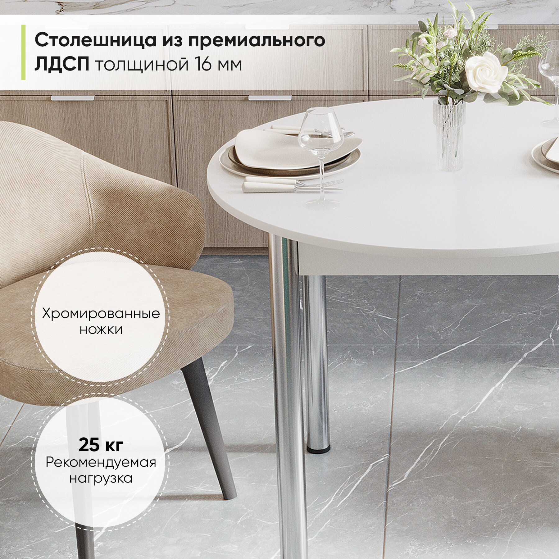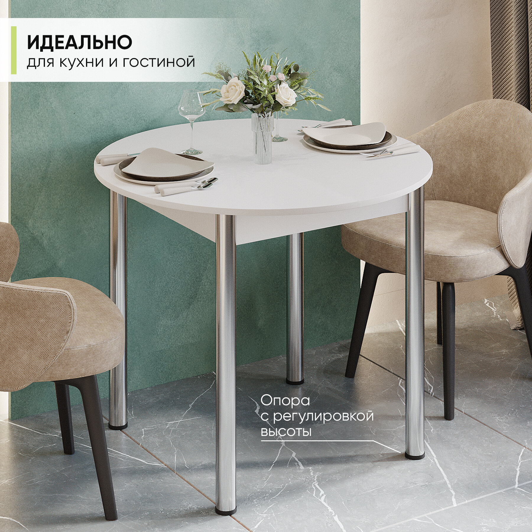 Стол кухонный круглый нераздвижной - эргономичная модель, которая не занимает много пространство. Стол обеденный круглый отлично впишется в любой интерьер и придаст ему уюта. Компактный размер позволяет разместить маленький круглый столик даже в небольшой кухне. Стол круглый легко собрать самостоятельно. Каркас и столешница приходит в собранном виде, и вам остается только прикрутить ножки и по необходимости отрегулировать по высоте. Столешница и каркас изготовлены из фактурного ЛДСП в различных цветовых решениях. Заводская надёжная упаковка из крепкого, плотного 5-и слойного картона поможет добраться столу до Вас в целости и невредимости. На все наши кухонные столы действует гарантия производителя 12 мес.