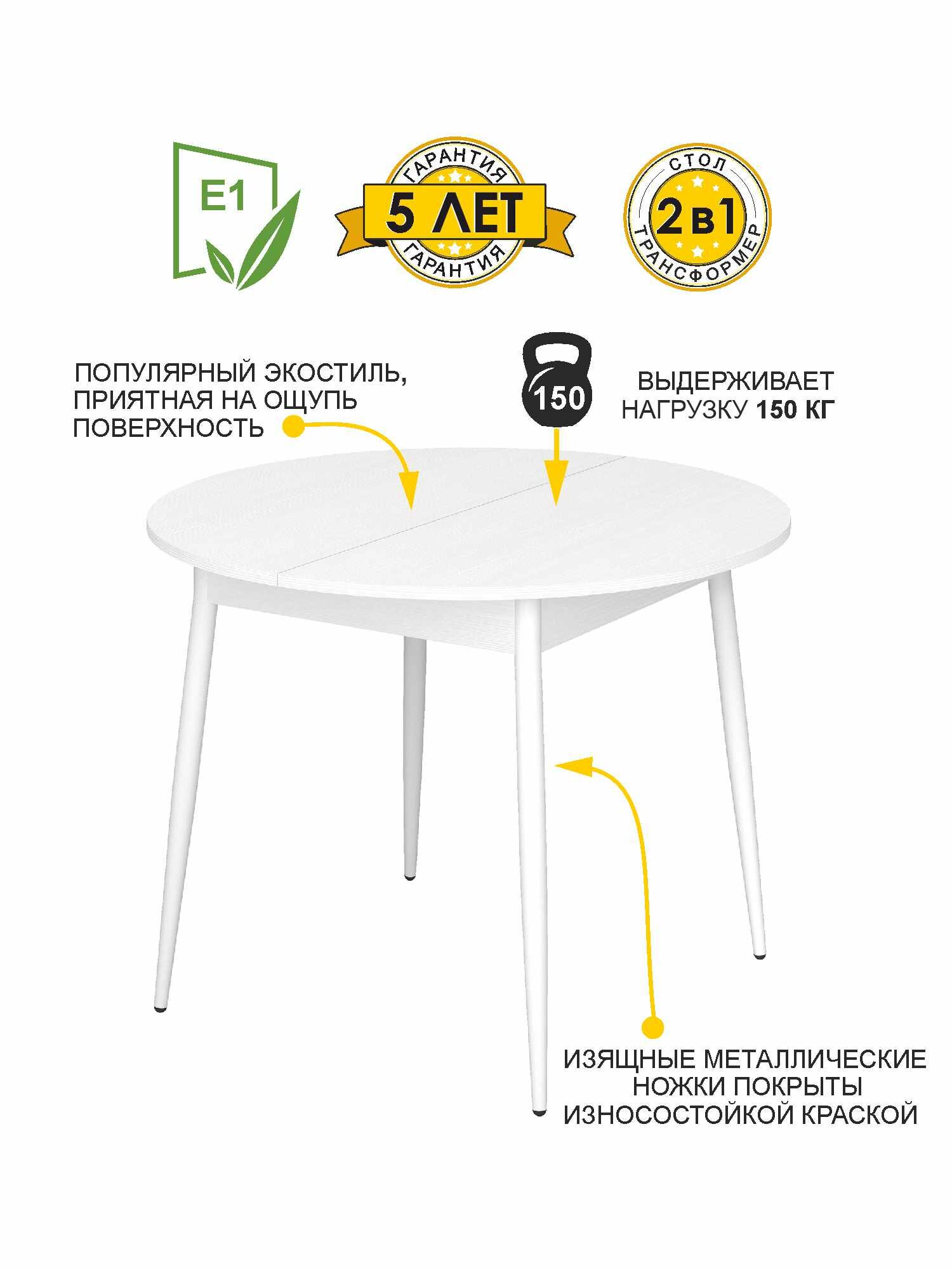 Стол кухонный круглый раздвижной Парма 12 (02) Белый шпон/Белый, 100х100х75 см: сравнение цен, характеристики, фото, актуальное наличие и цены.