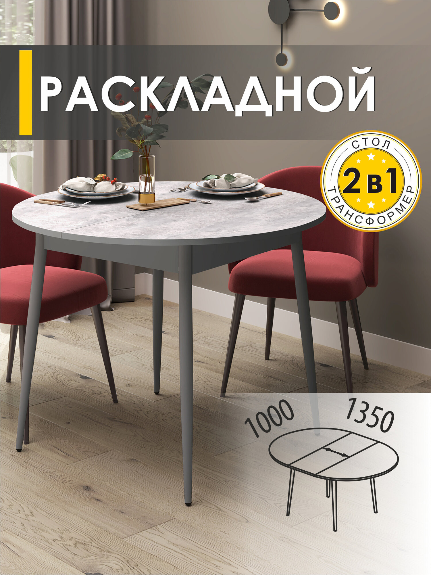 Стол кухонный круглый раздвижной Парма 12 (06) Цемент/Оникс, 100х100х75 см: сравнение цен, характеристики, фото, актуальное наличие и цены.