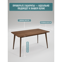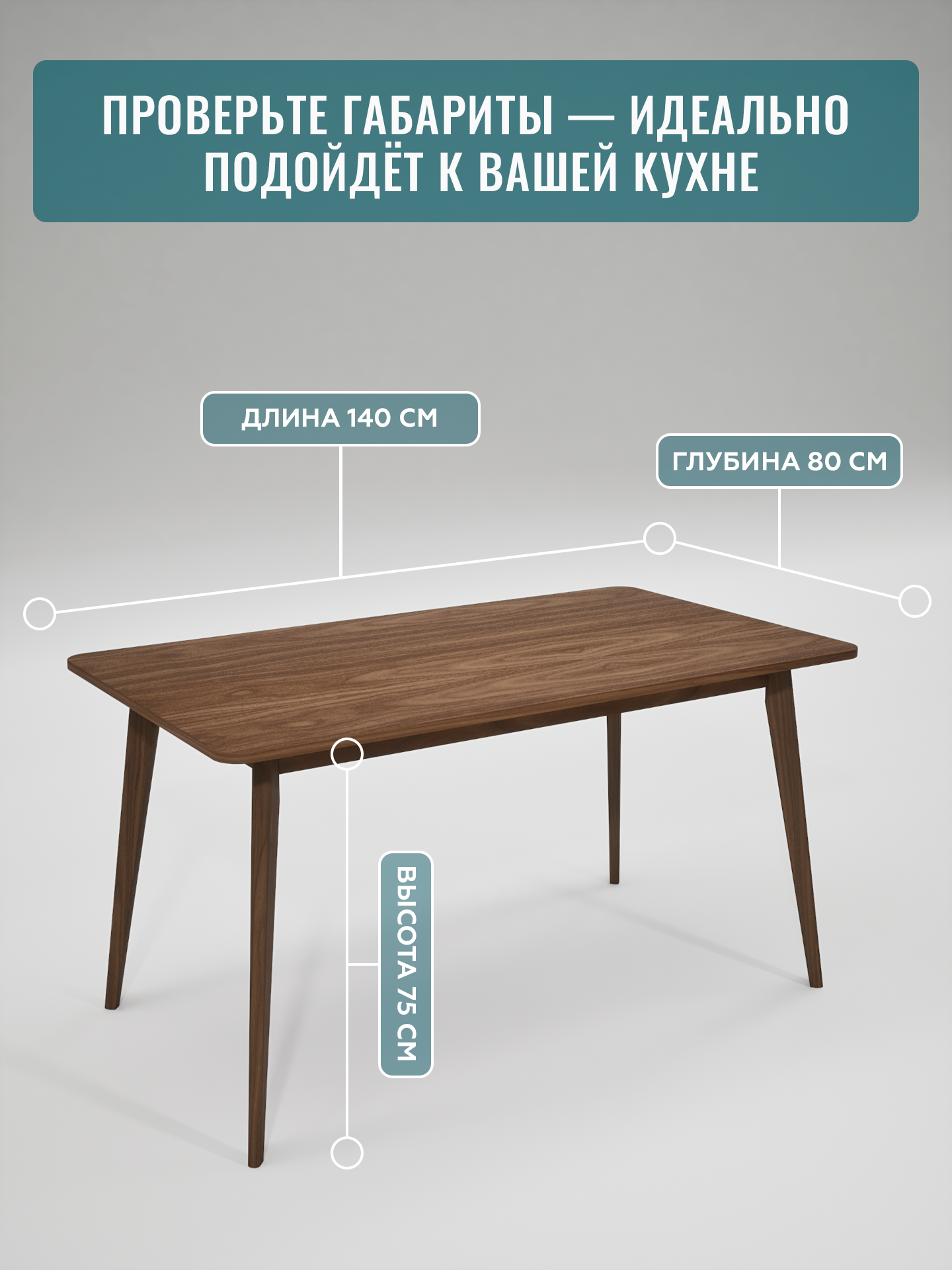 Идеальные габариты: Стол длиной 140 см и глубиной 80 см с комфортом разместит до 4-6 человек, не загромождая пространство.