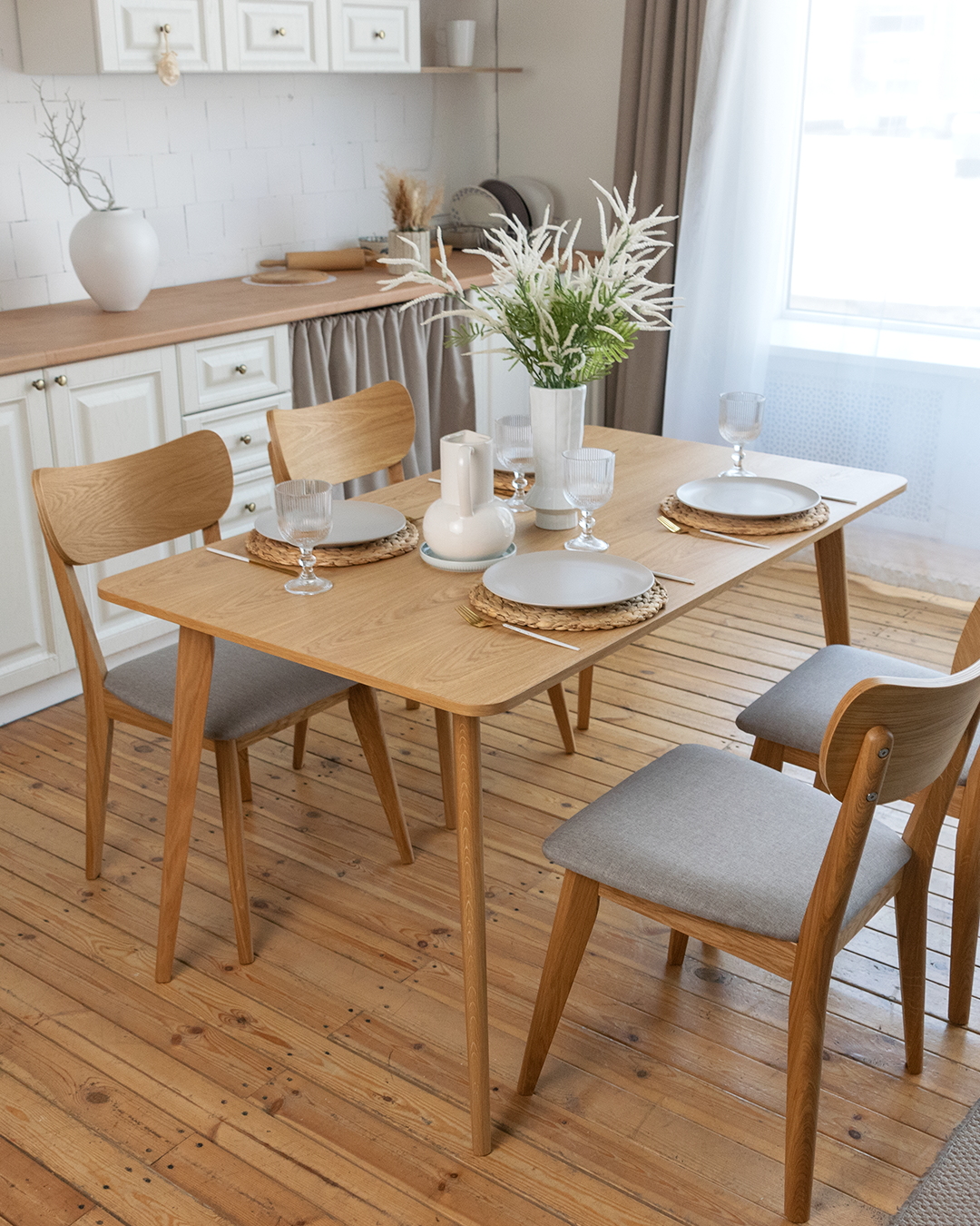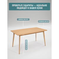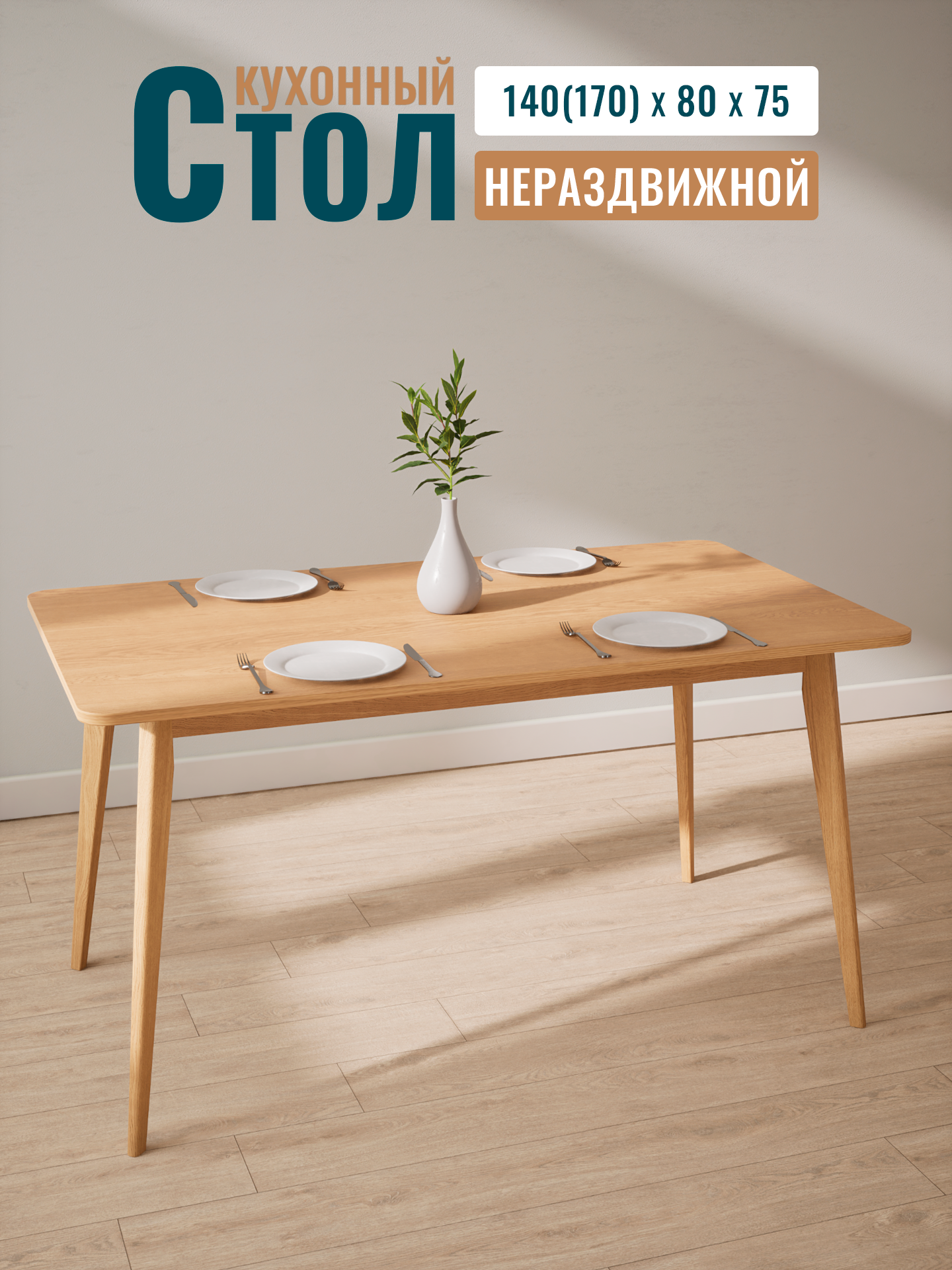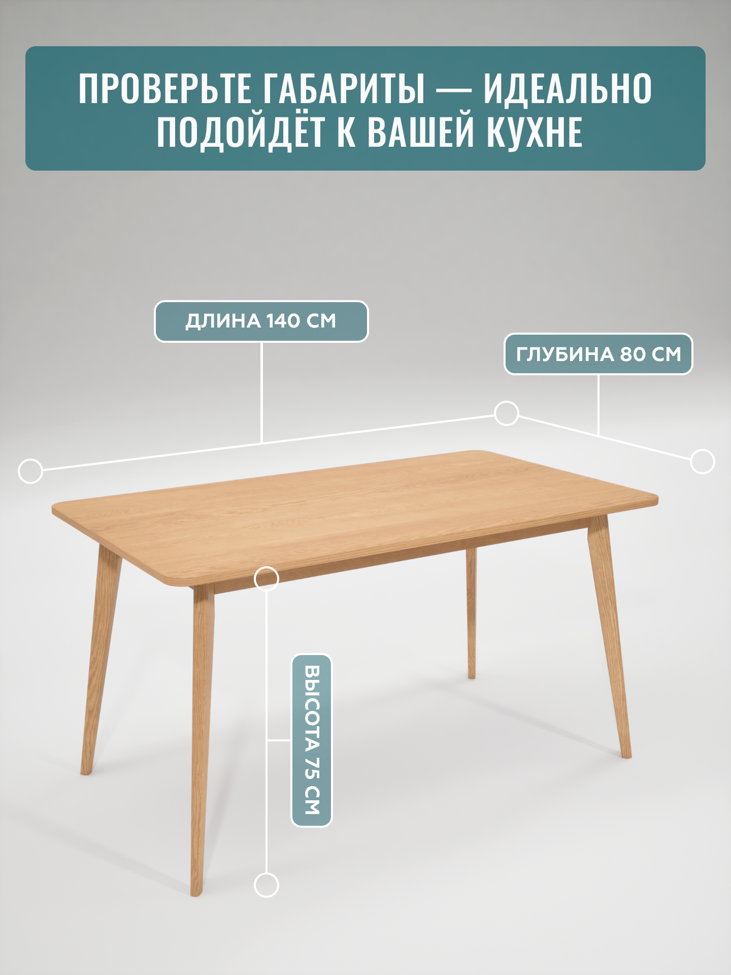 Стол обеденный кухонный нераскладной в скандинавском стиле из массива и шпона дуба 140х80: сравнение цен, характеристики, фото, актуальное наличие и цены.